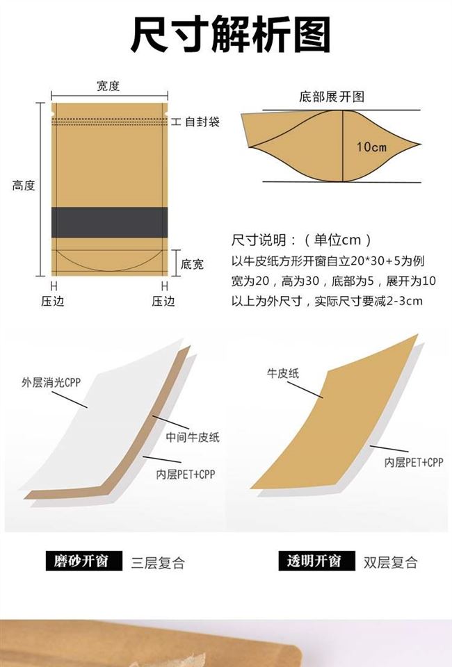 Пользовательский пакет из крафт-бумажного пакета, продовольственный мешок с застежкой-молнией,
