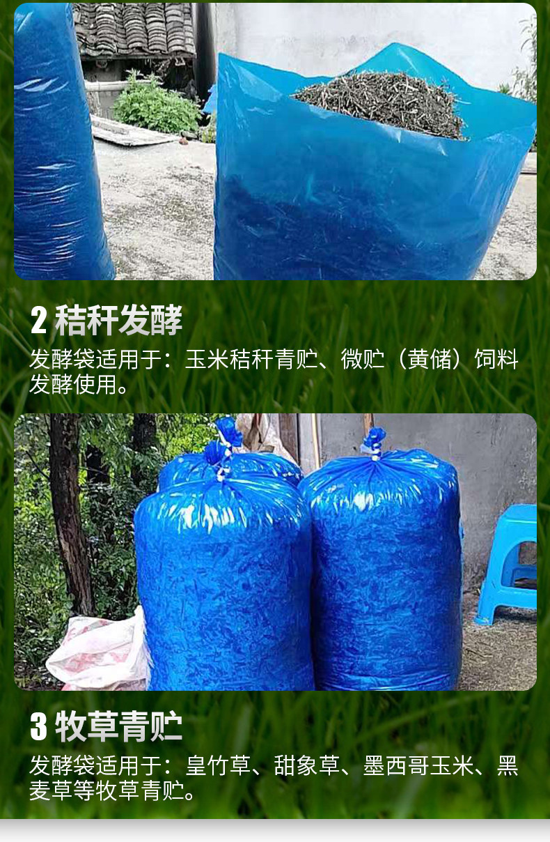 Десять лет старых магазинов Более 20 цветов зеленого хранения корм для ферментированных пакетов корма кукурузная солома, увеличение бобового шлака вина, силос, пластиковый пакет, пластиковый пакет