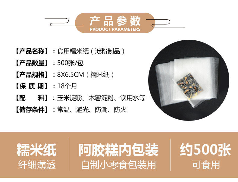 [大糯米纸包阿胶糕包装袋纯手工食用家用糖果大张雪花酥专用6.5x10]