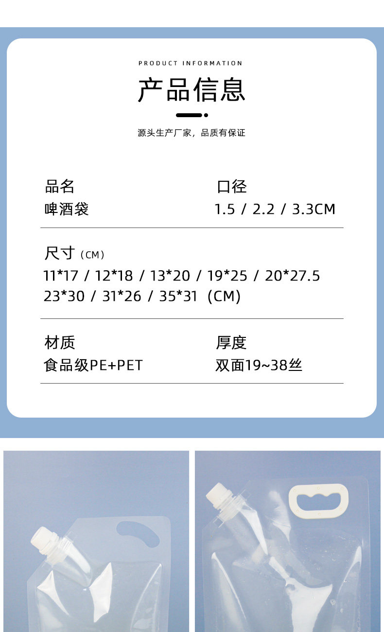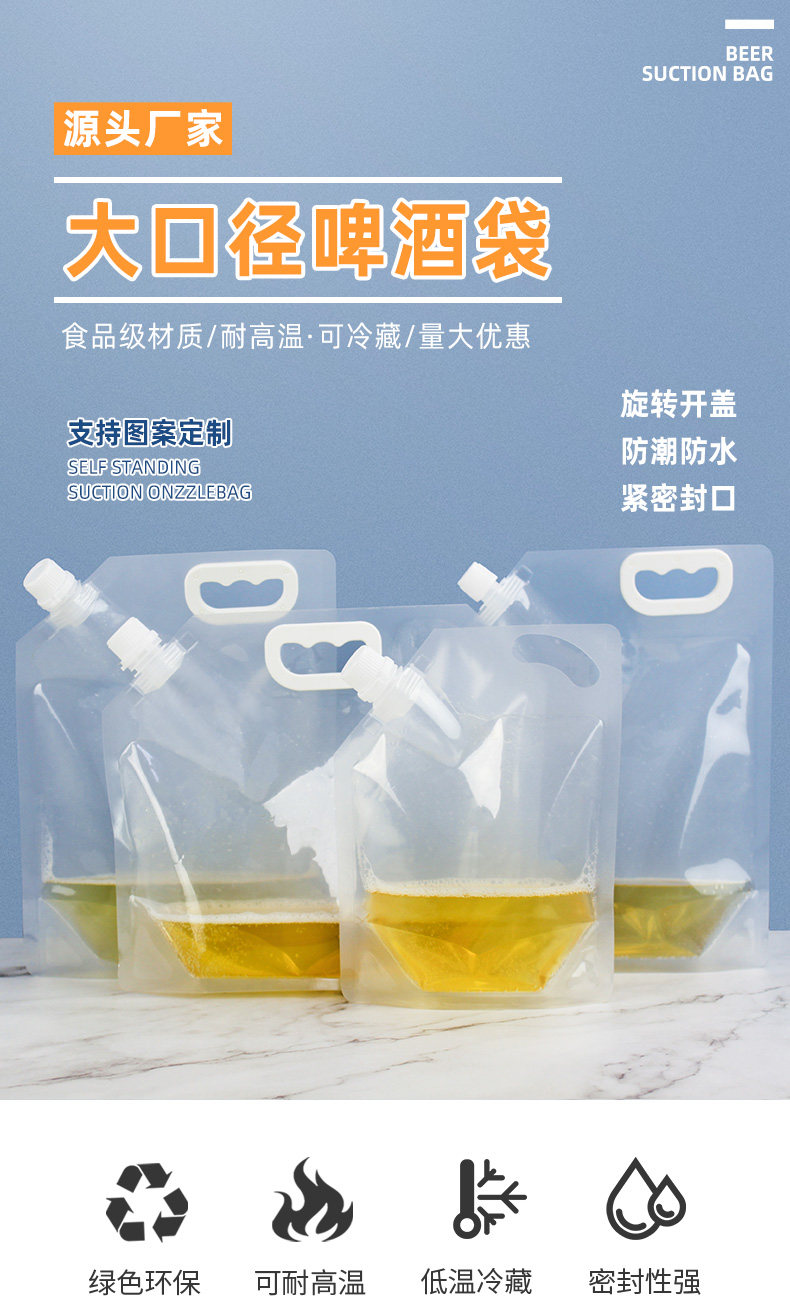 Еда -обновление пива одноразовая рука таза пивная сумка с большим ртом высасывание рот рот Qingdao Свежий пиво.