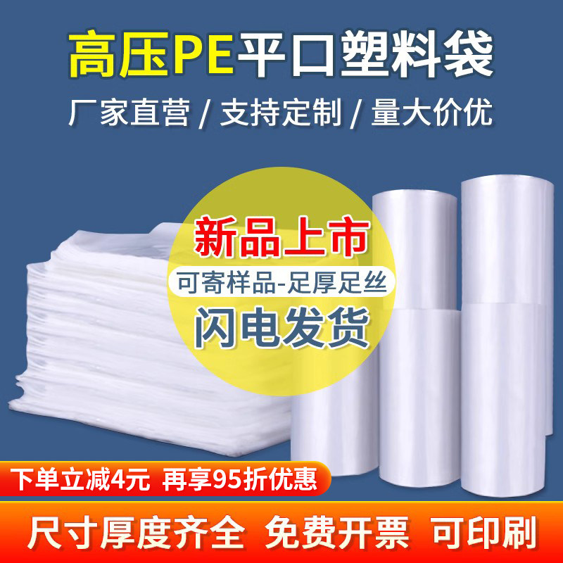 Сумка с высоким давлением PE Плоская рта прозрачная большая утолщенная плоская пластиковая пластиковая пакет Оптовая пыль -Prentic Plomt Plomt Membrane Membrane Mack Suck
