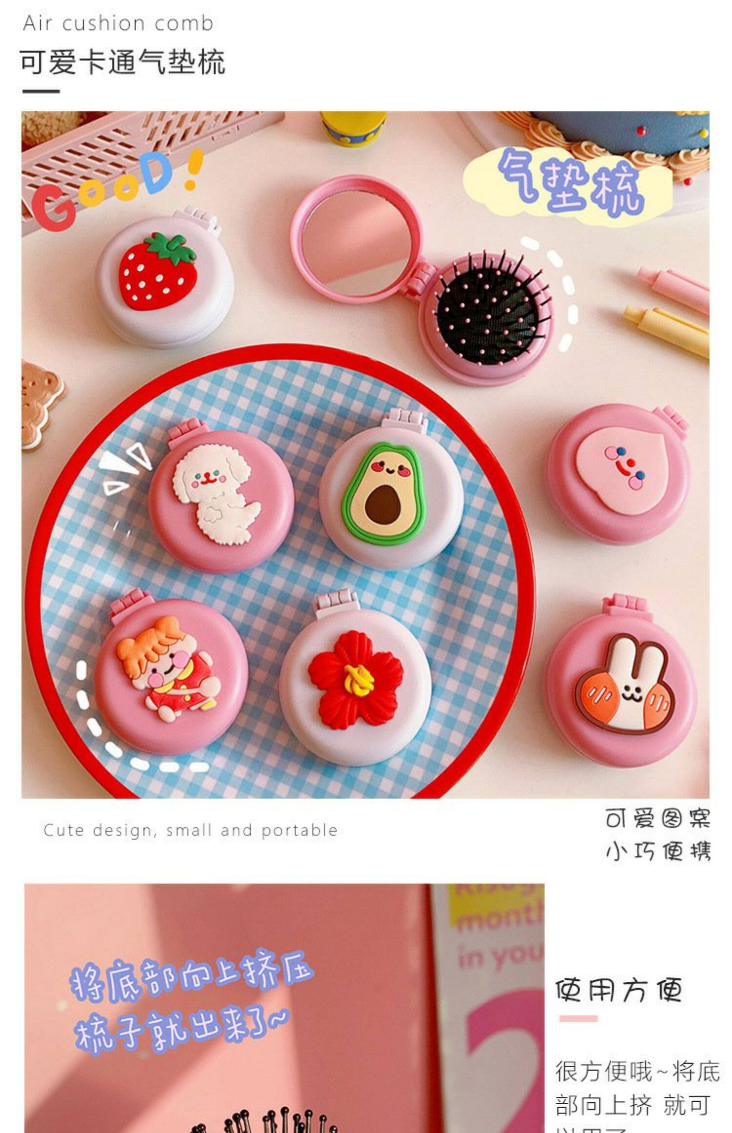 Модное складное зеркало, портативная свежая милая расческа, подушка безопасности, Южная Корея