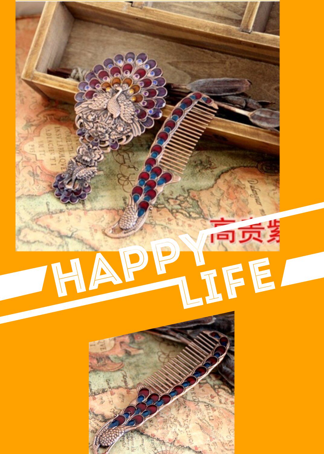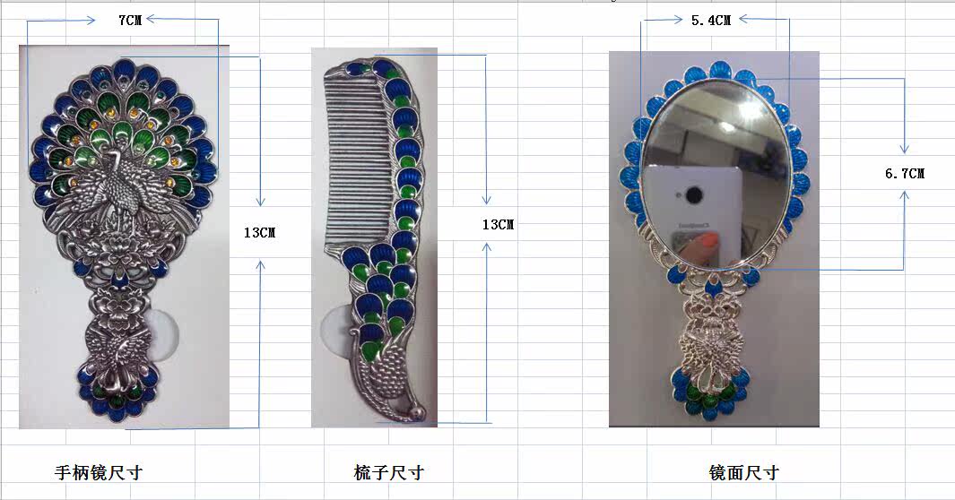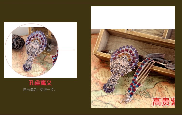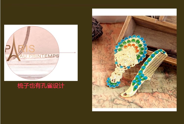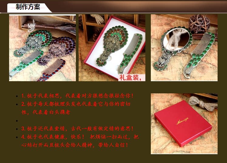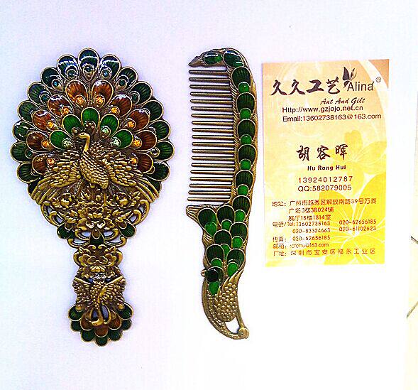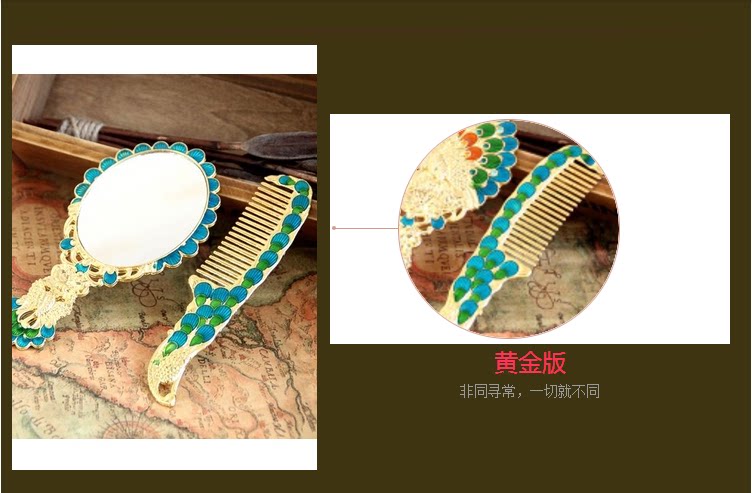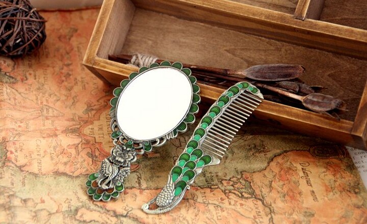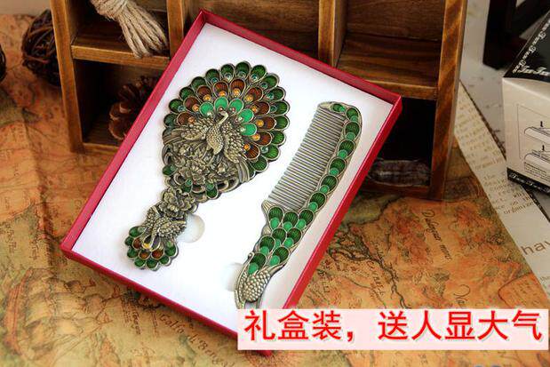 Зеркало, расческа, портативный комплект, креативная ретро ручка для принцессы, павлин