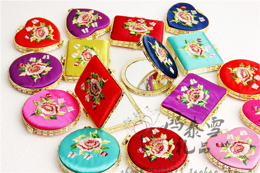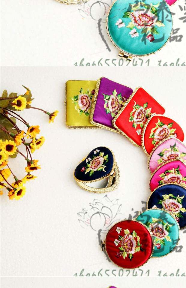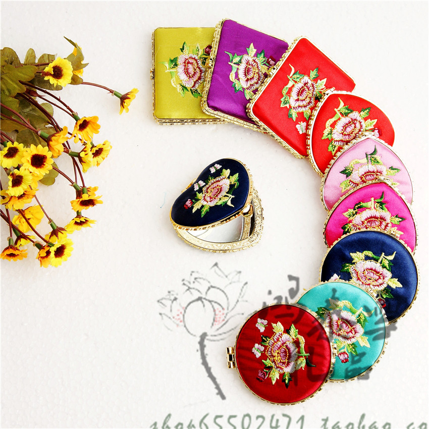 Золотая барабанная музыка бессонница пациентов с тонким видом на складное складное шелковое зеркало Этническое подарочное зеркало