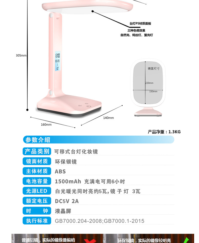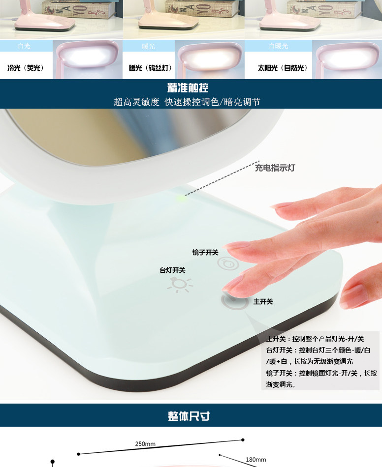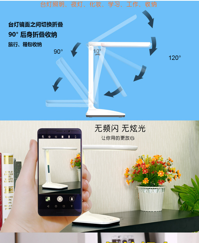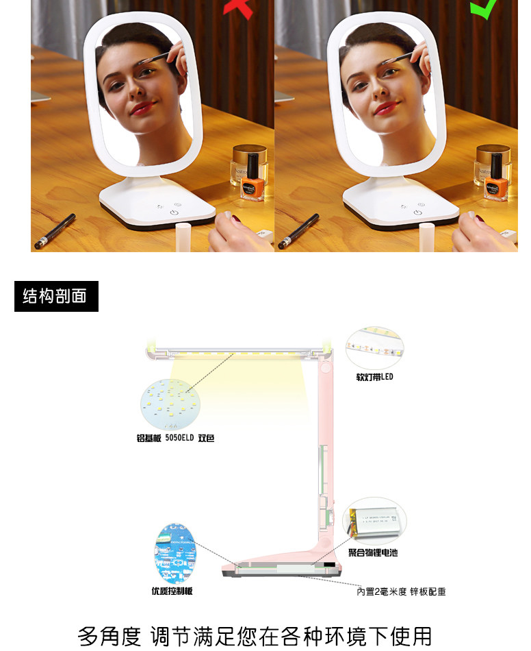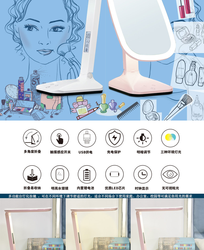 Светодиодная складная настольная лампа, портативное светодиодное регулируемое зеркало