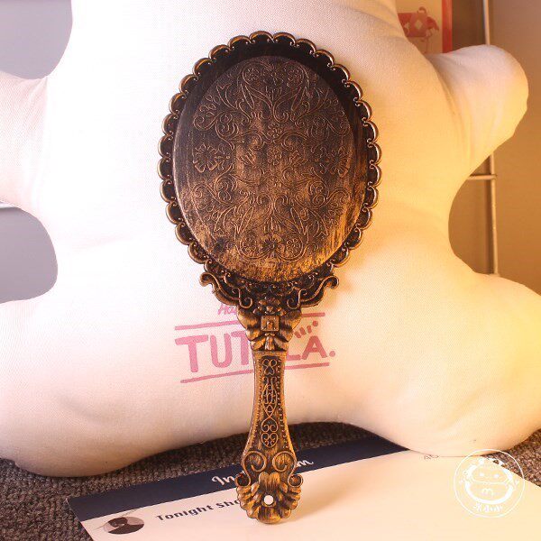 Ручка, ретро бронзовое портативное классическое зеркало