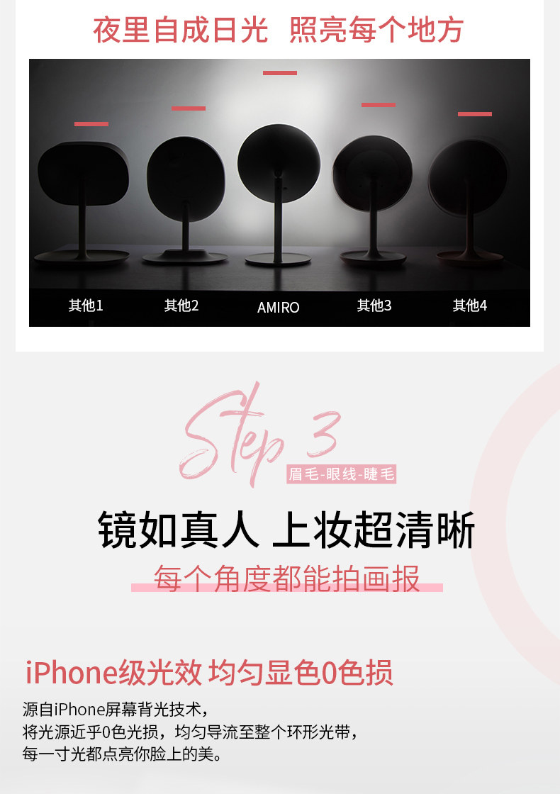 [Неделя участника] Amiro Makeup Mirror Mini Desktop Led Light Set Red Beauty Mirror Light Light Band Light Mircor