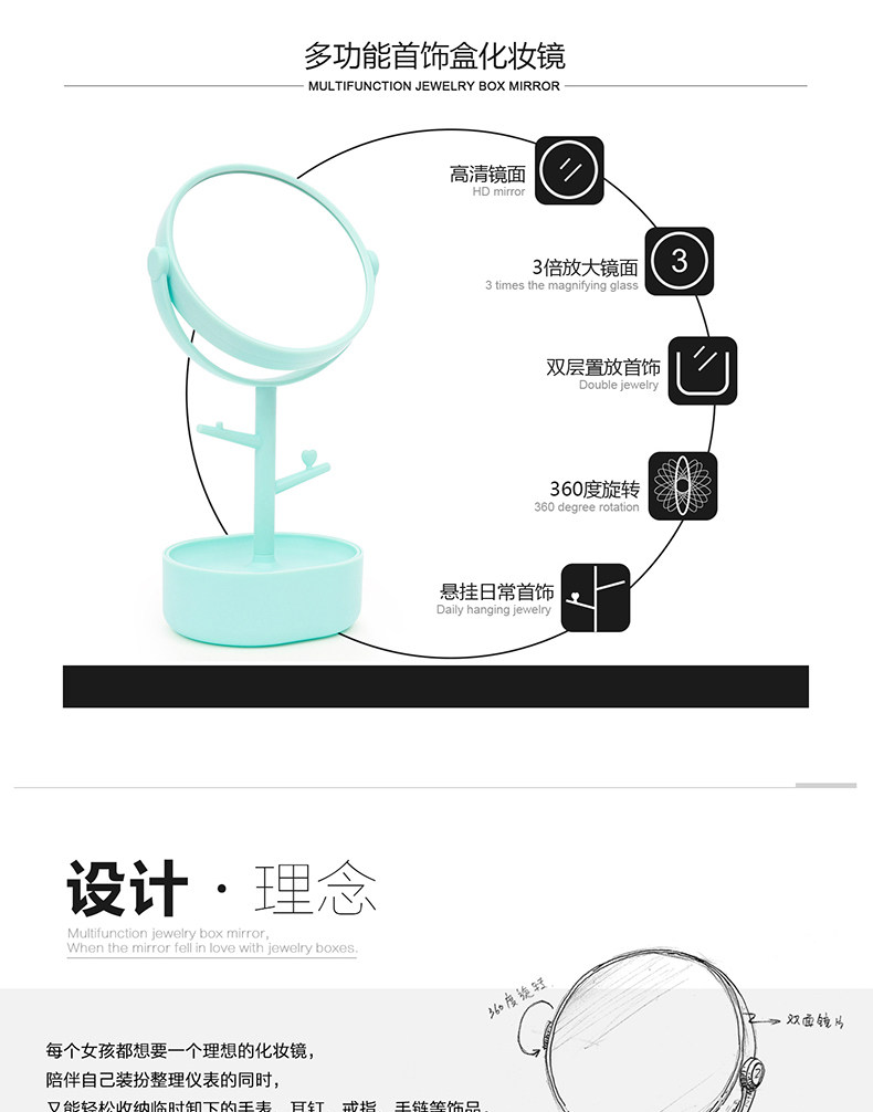 Настольное двусторонное зеркало с подсветкой для школьников для принцессы