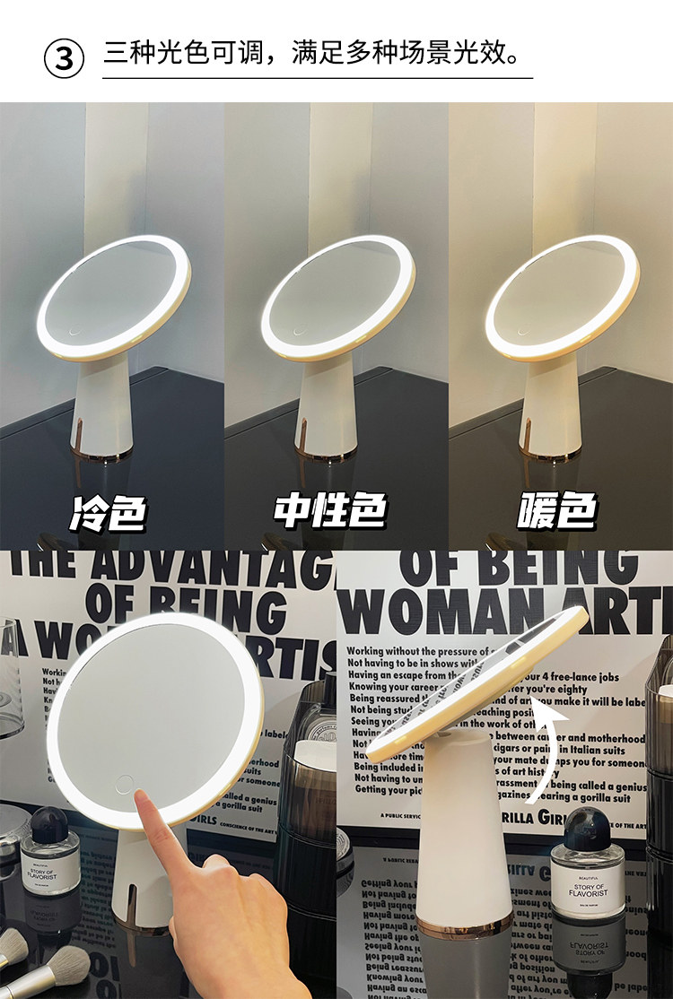 Настольное светодиодное зеркало с подсветкой, портативный туалетный столик, умный заполняющий свет, изысканный стиль