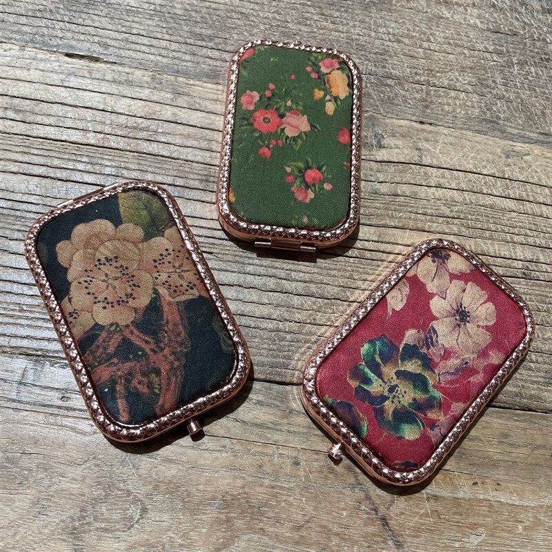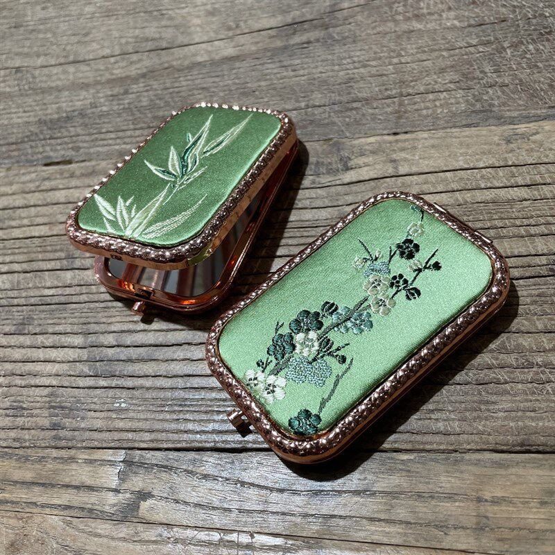 Портативное складное квадратное двустороннее косметическое зеркало с гальваническим покрытием из розового золота, металлическое мини-изысканное ретро-косметическое зеркало