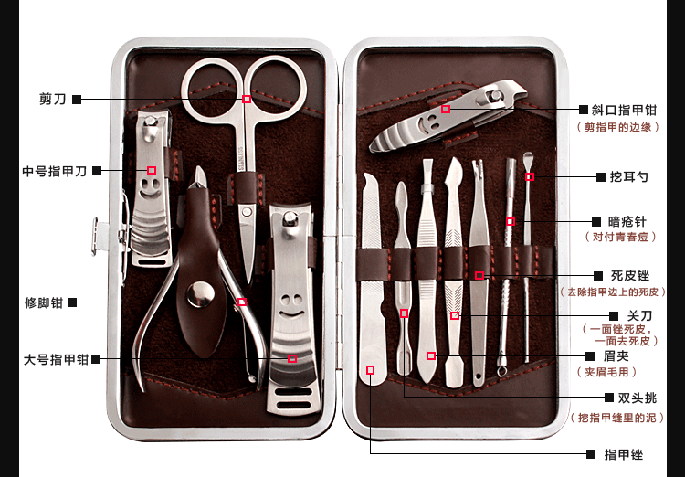 Комплект для ногтей, набор маникюрных инструментов для маникюра, портативные маникюрные кусачки подходит для мужчин и женщин для взрослых, 12 шт