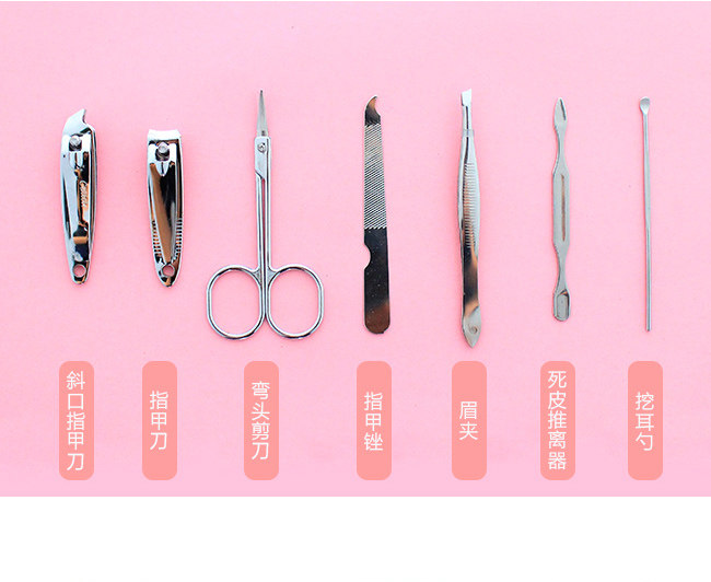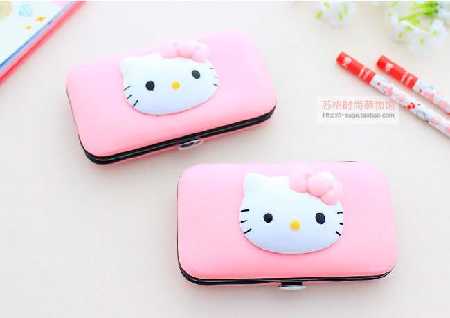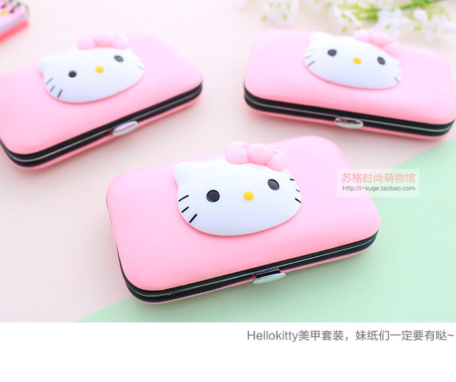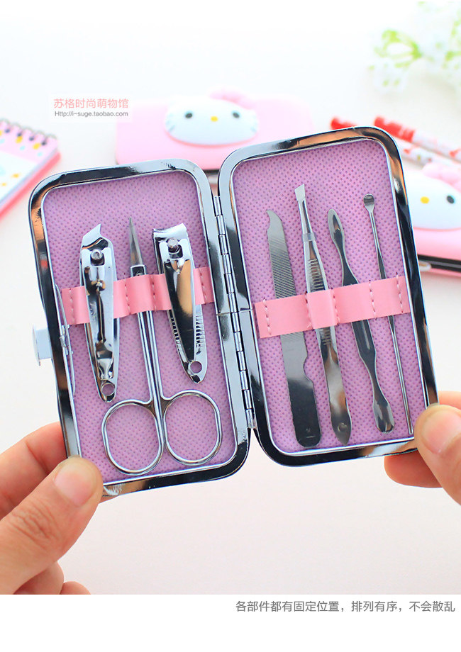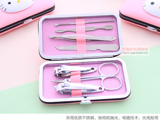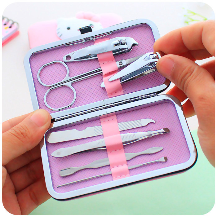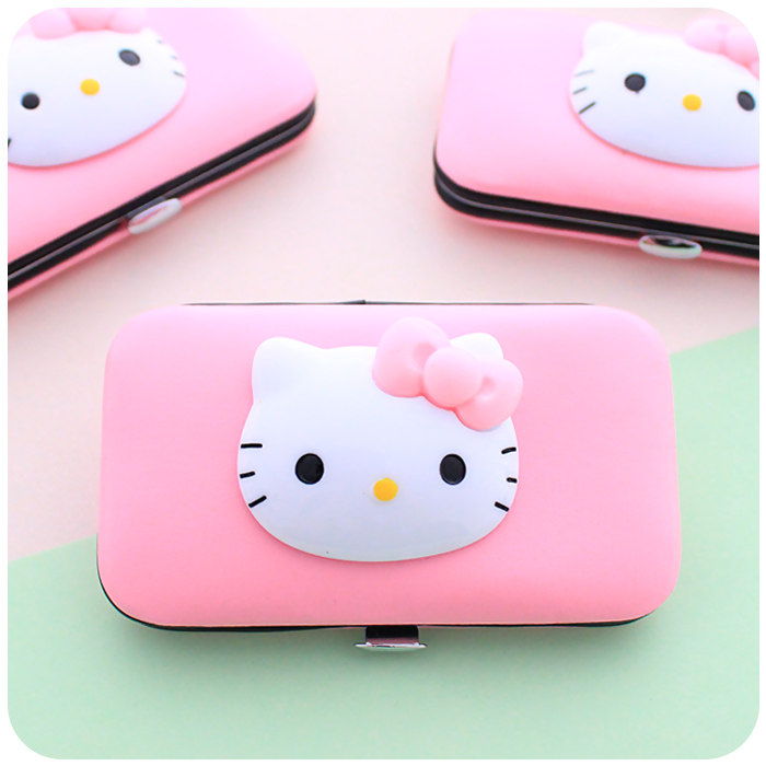 Hello Kitty, мультяшный комплект из нержавеющей стали для ногтей, маникюрные кусачки, ножницы, набор маникюрных инструментов для маникюра, 7 шт