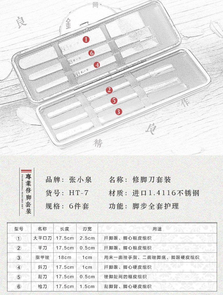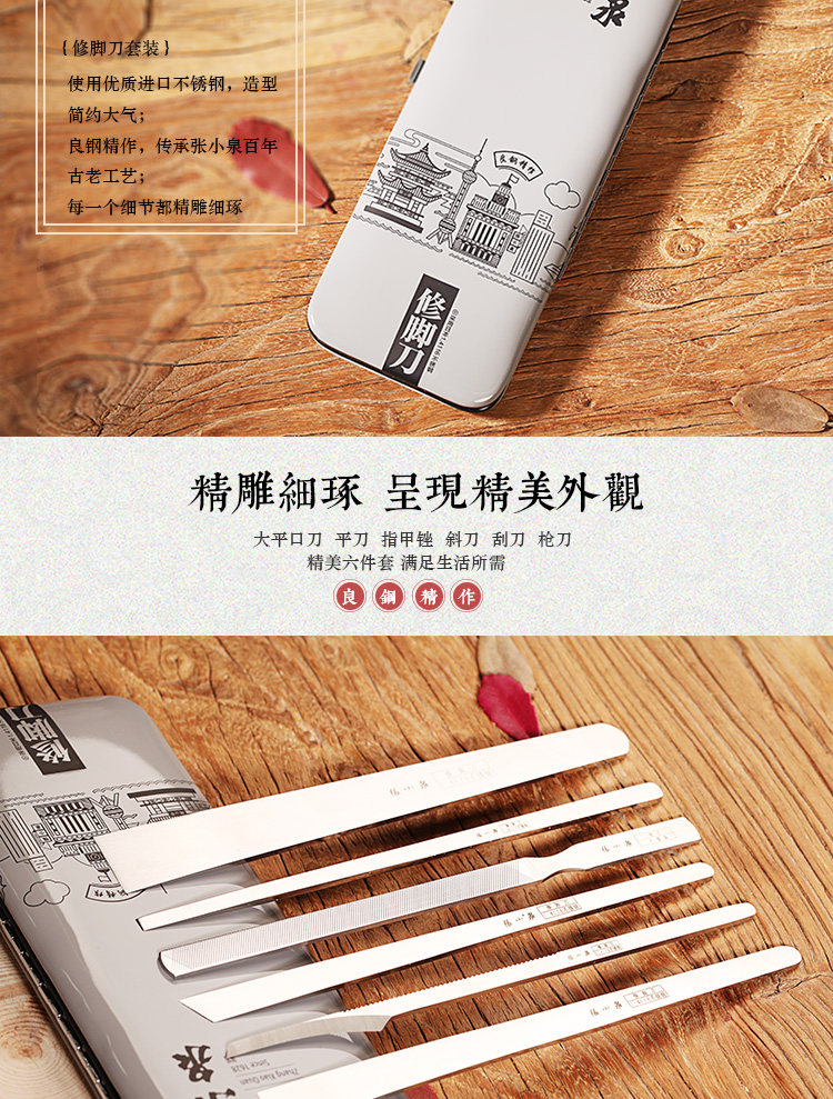 张小泉 Нож для педикюра, установленная шестьюрец нож для нож HT-7 Импортированная нержавеющая сталь мертвая кожа Calluses были вырезаны и отправлены, чтобы измельчить камень