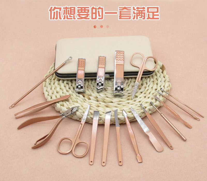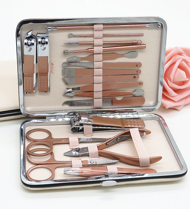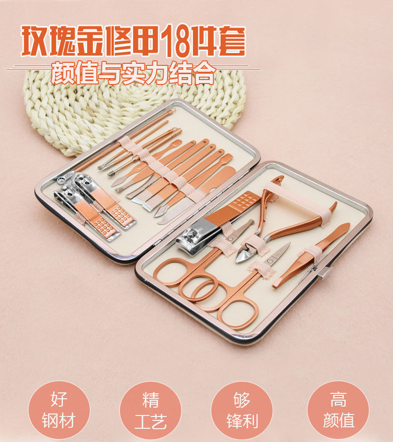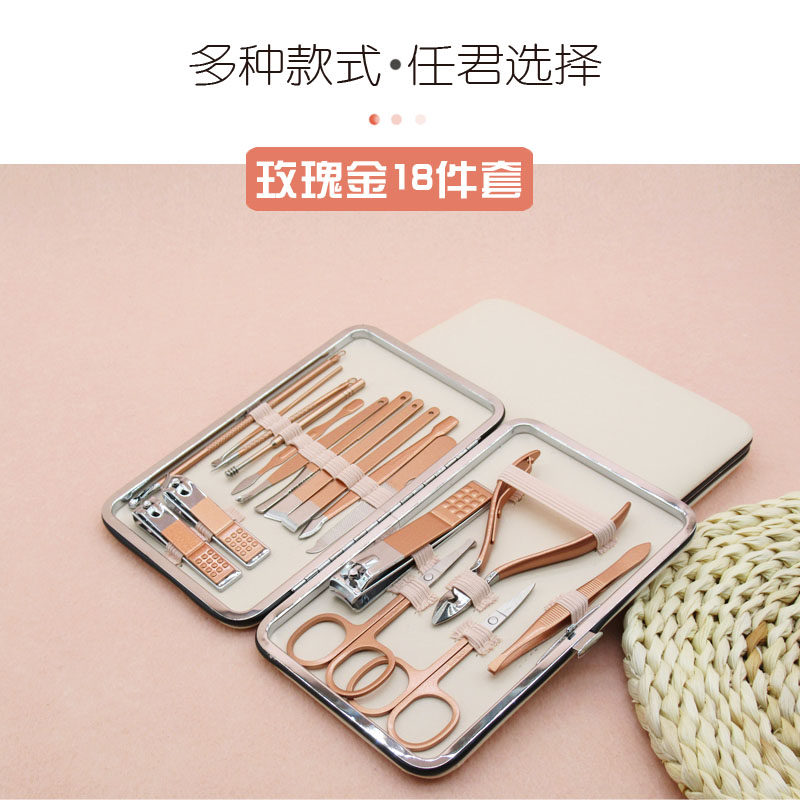 Маникюрные кусачки, комплект из нержавеющей стали, аксессуары для ногтей, косметический набор маникюрных инструментов для маникюра, 18 шт, делается под заказ, с печатью вашего логотипа