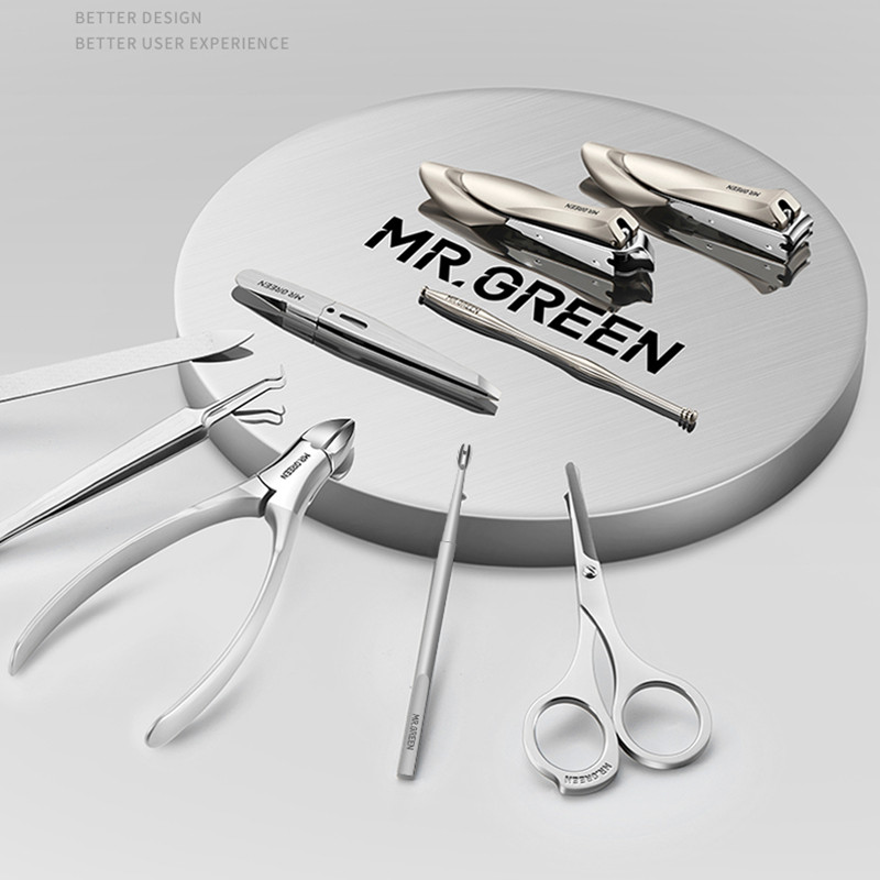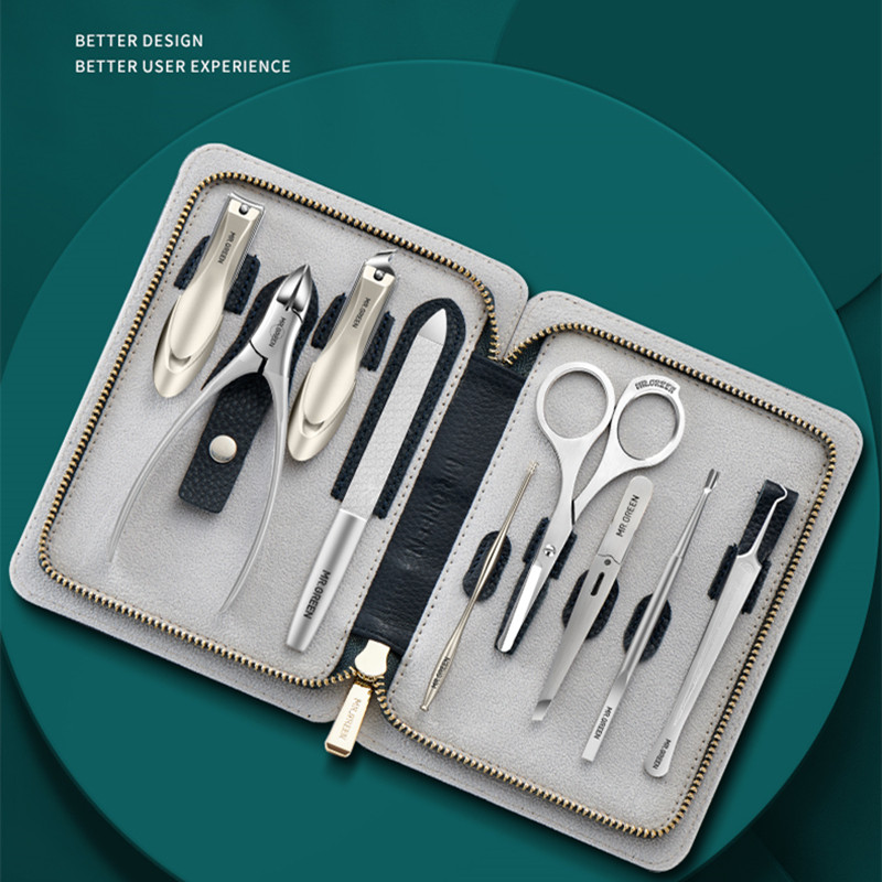 Набор маникюрных инструментов для ногтей, мужской импортный кожаный комплект, маникюрные кусачки, Германия, 9 шт