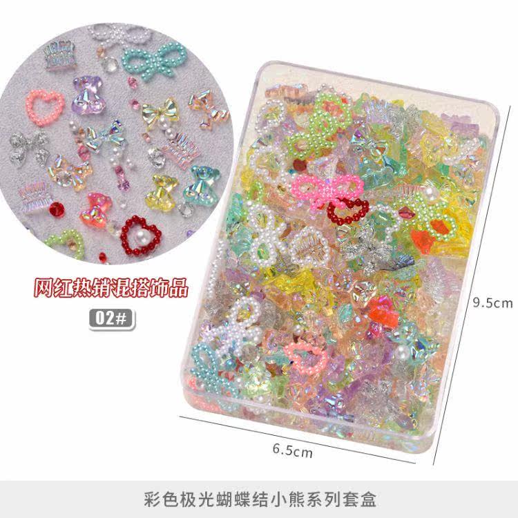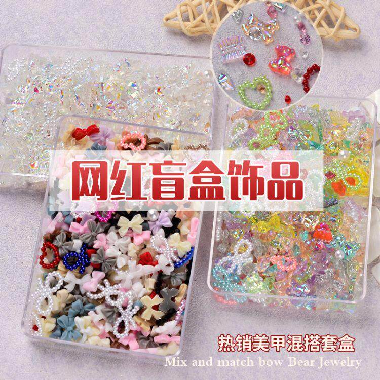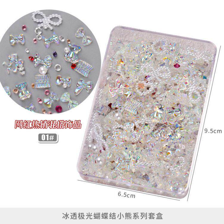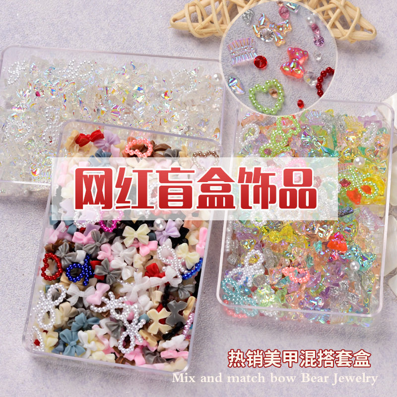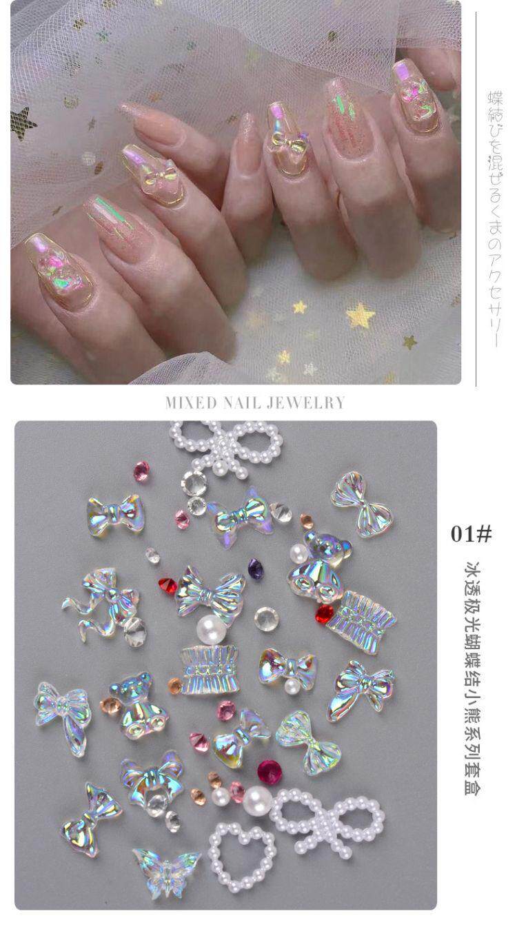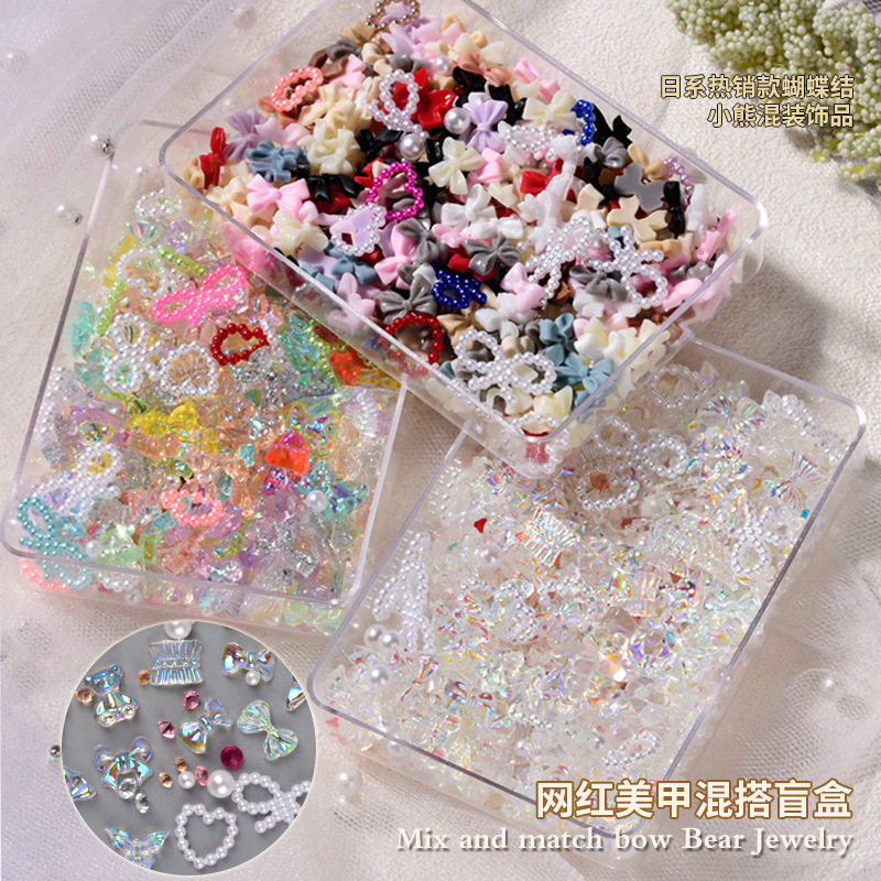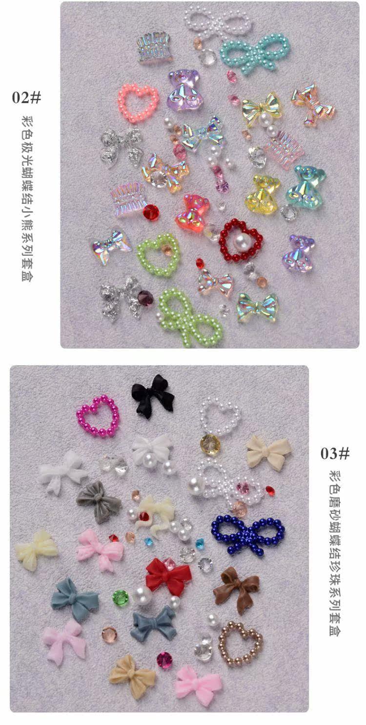 Аксессуар для маникюра с бантиком, мультяшное ювелирное украшение из жемчуга, набор, популярно в интернете, с медвежатами