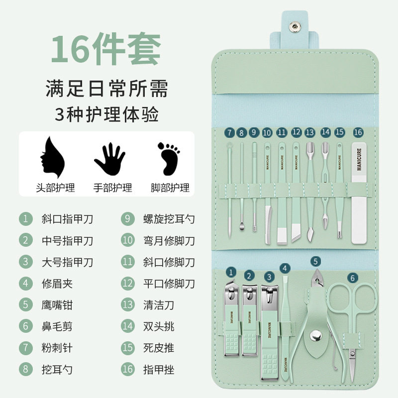 Комплект для ногтей для домашнего использования, лечебные маникюрные кусачки для взрослых, набор маникюрных инструментов для маникюра, 16 шт