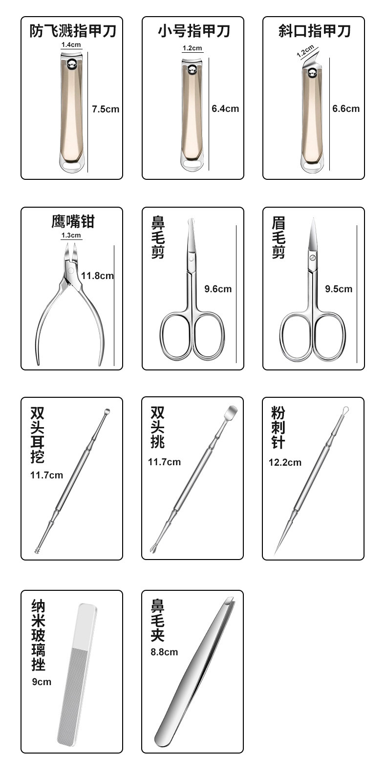 Маникюрные кусачки, комплект для ногтей, плоскогубцы, ухочистка, подарок на день рождения, 11 шт