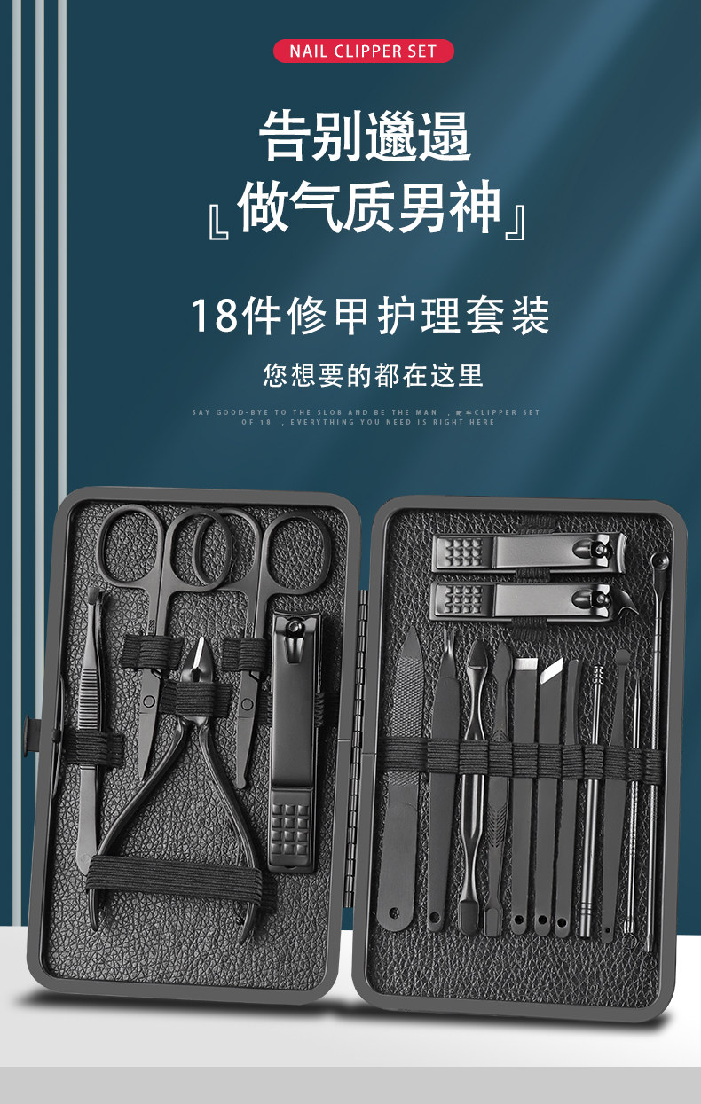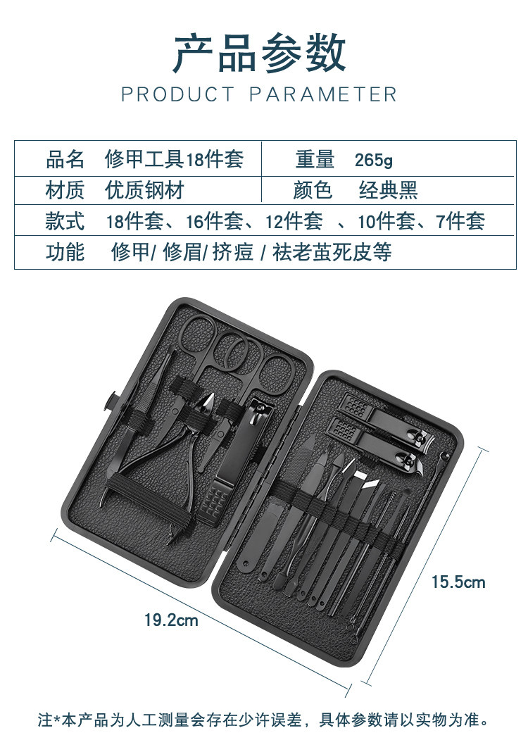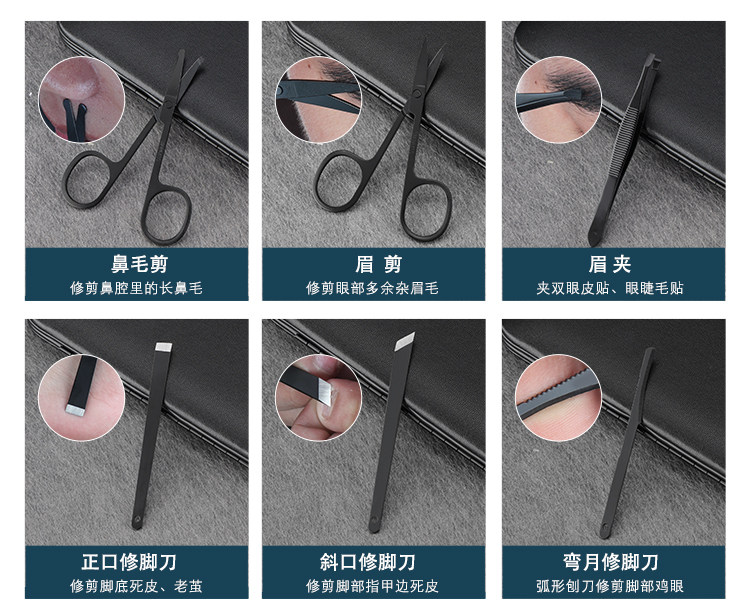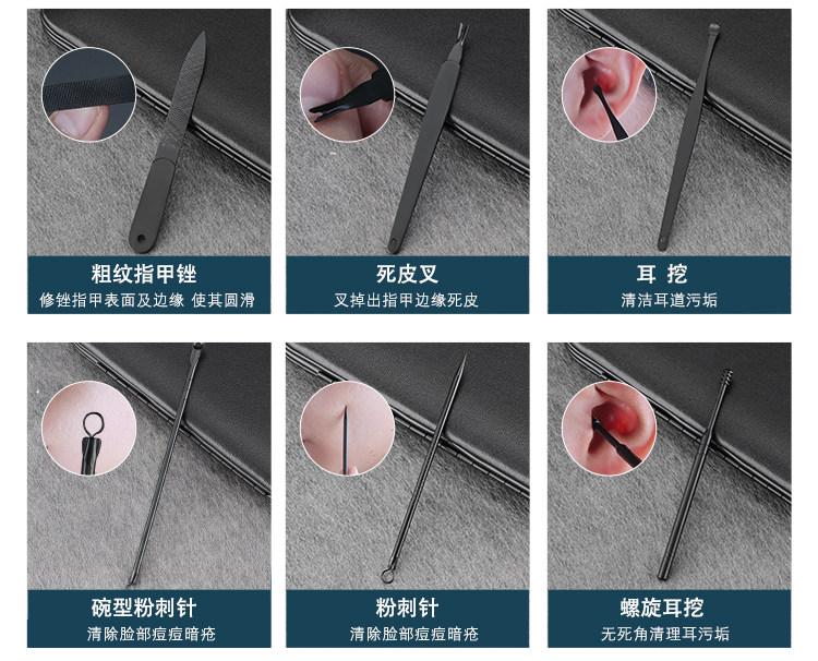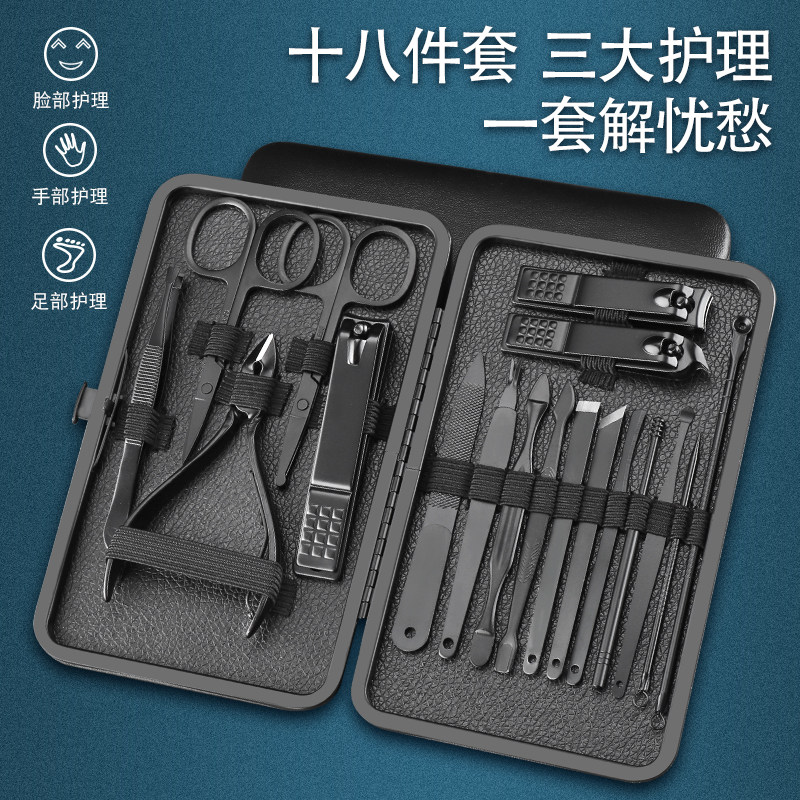 Черный комплект из нержавеющей стали для ногтей, набор маникюрных инструментов для маникюра, ухочистка, маникюрные кусачки