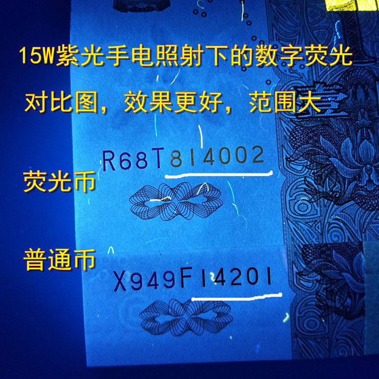 Сравнение: 90 % длины волн бытового использования 395 -нм лампы, которые делают немного флуоресценции, нельзя вывезти, например: 5 -я версия 1 Цифровая флуоресценция юаней, 5 версий 20 юаней обратно.Поймите знание фонарика и купите шаг -силу на месте. Производительность стоимости очень высока.
