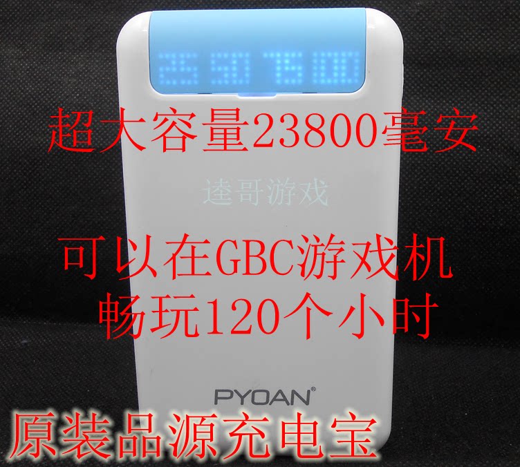 Новая внешняя батарея (23800 мАч является реальным стандартом, магазин может сыграть 120 часов в случае источника питания игровой консоли Nintendo GBC, используя эту питание полной мощности.