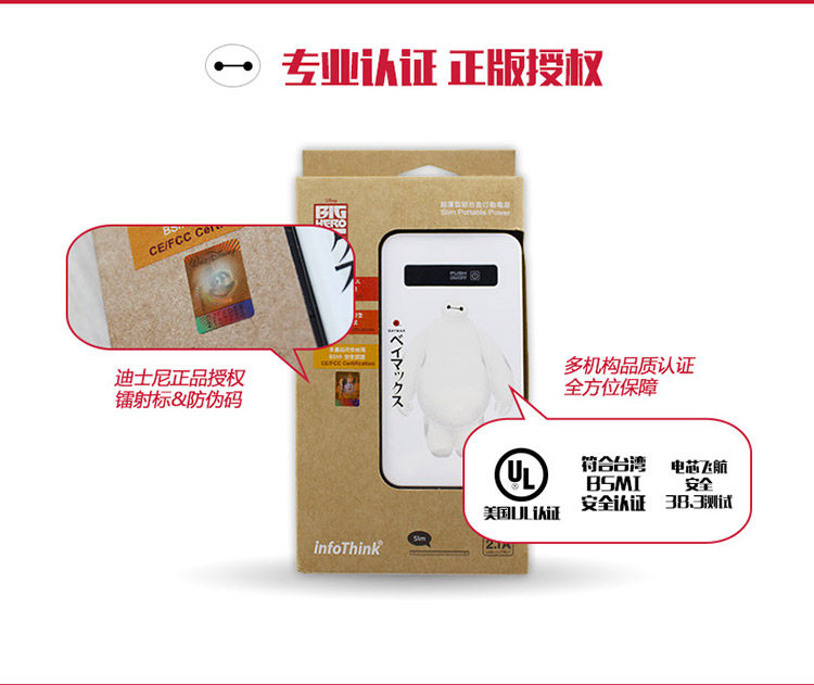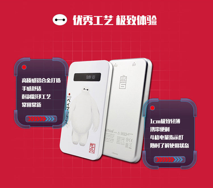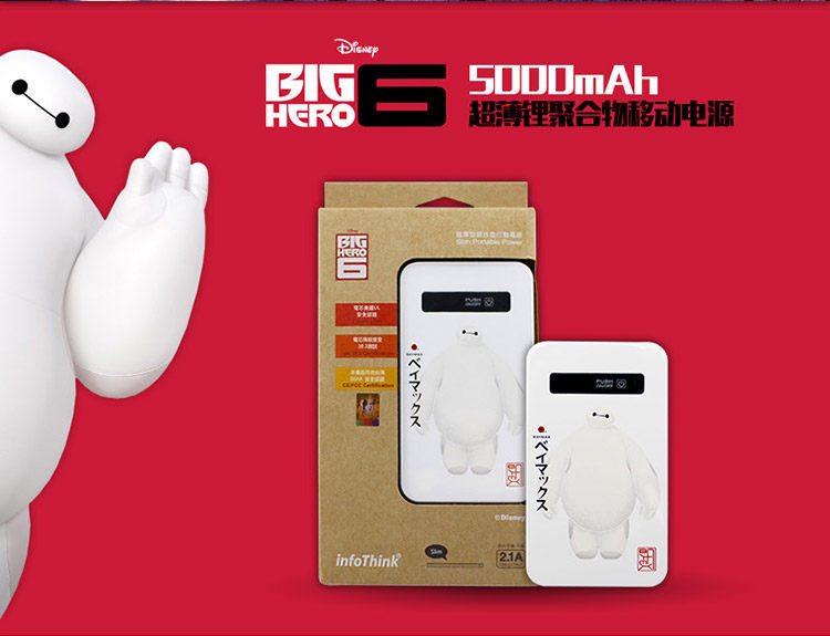 Подлинный Disney Super Energy Marine Corps Mobile Power Baymax Big White Cartoon Mobile Plate -Платформенная общая зарядка сокровища