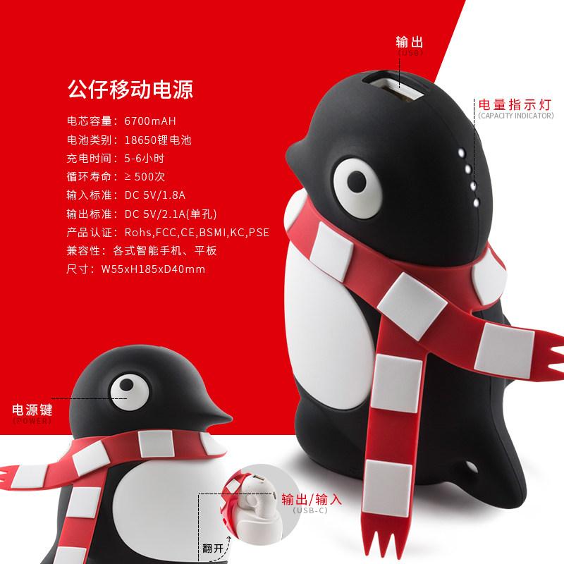 Bone Кукла, милый силиконовый блок питания для школьников, официальный флагманский магазин, 6700mah, пингвин