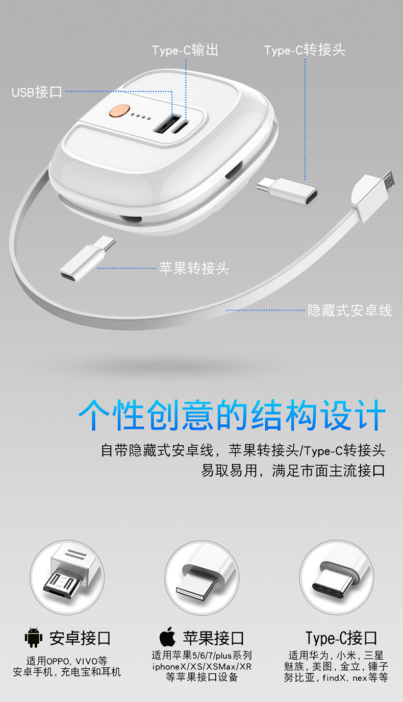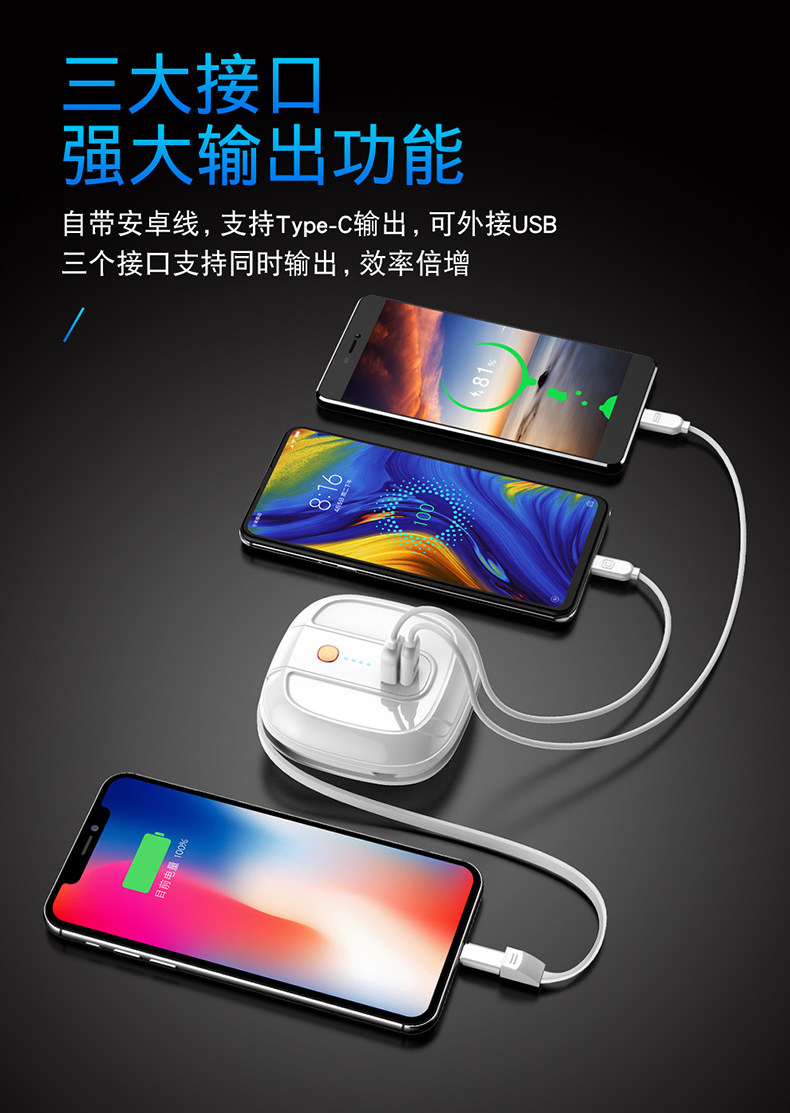Apple, зарядное устройство с зарядкой, универсальный мобильный телефон, маленький портативный совместимый блок питания, 2 в 1, «три в одном»