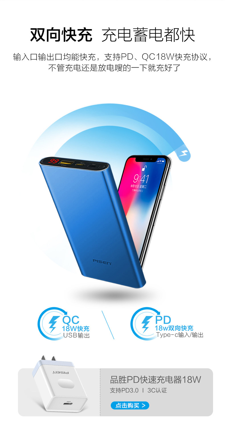 PIN SHENG Зарядка цветовая коробка сокровищ 10000 MIA 18 Вт быстрая зарядка PD версия Ultra -Thin Polymer большая емкость