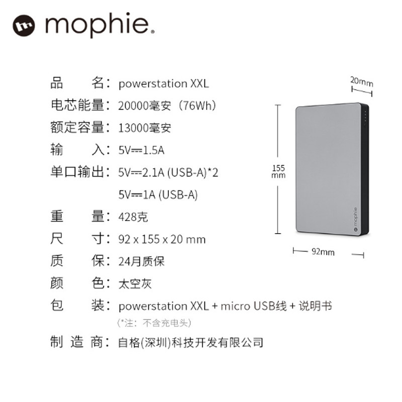 Mophie Outdoor 20 000 мАч зарядка сокровища Три -порт выходной выход Двойной 2,1A быстро заряжайте большую мобильную питание