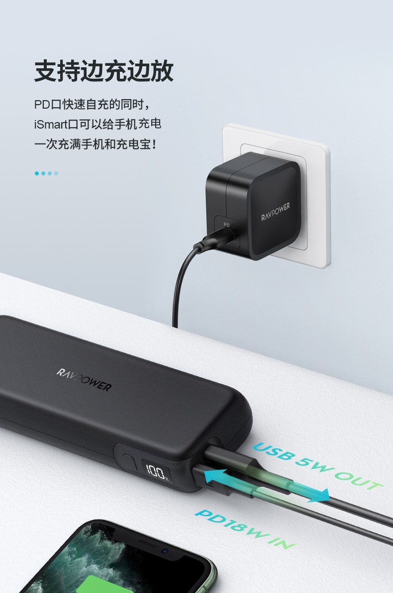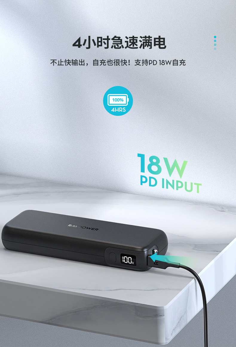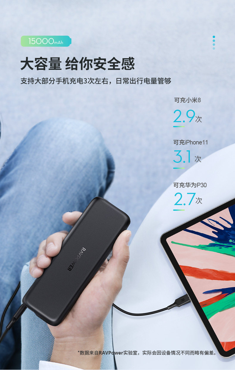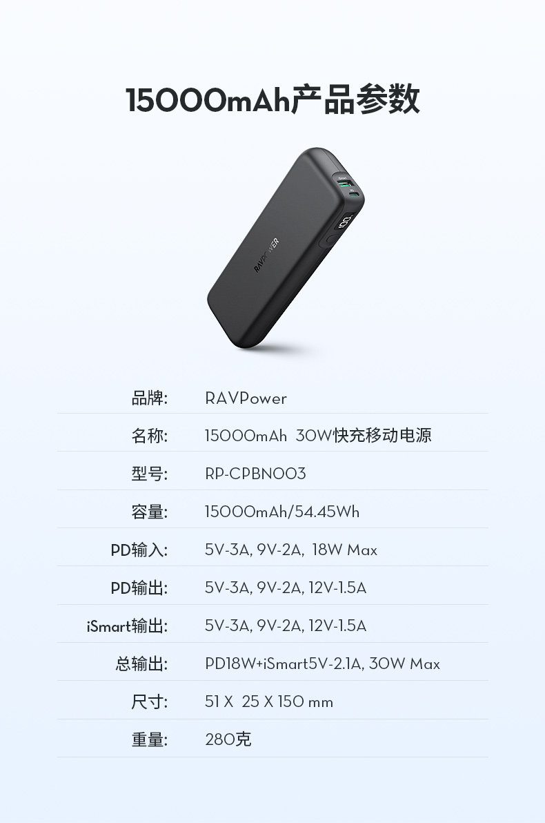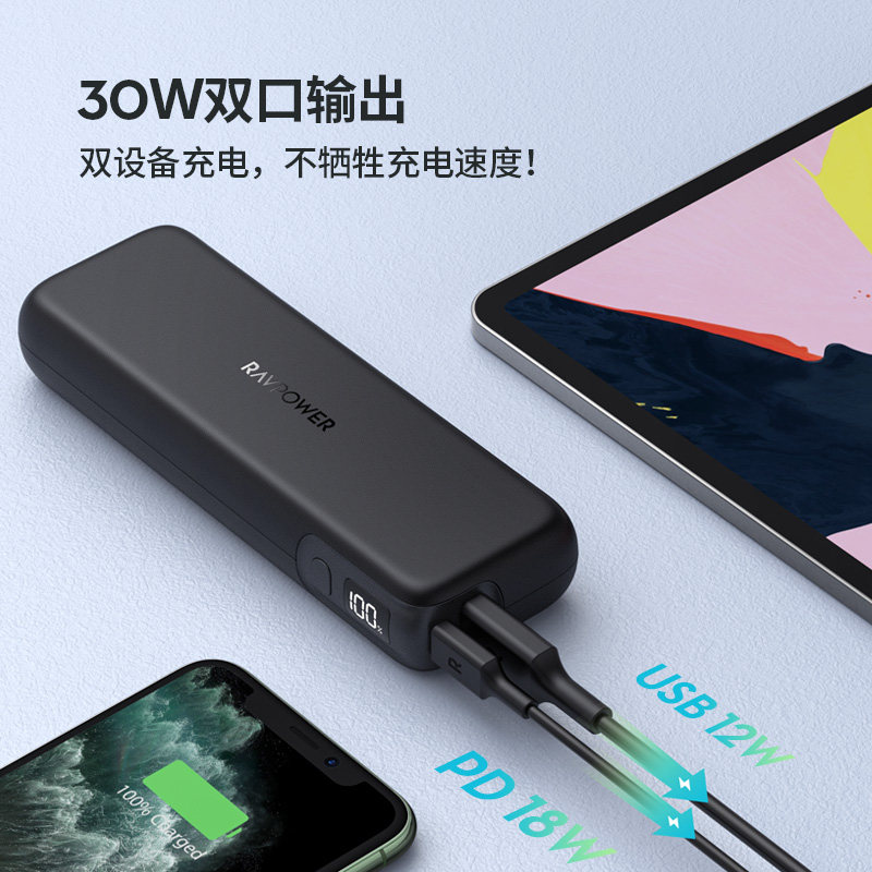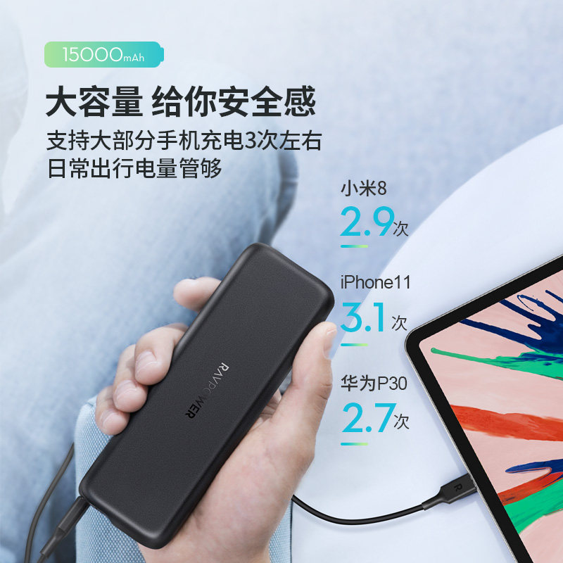Ravpower 15000 MAH 30W Двухверовой вывод PD Fast Charge Mobile Power Portable Mobile Mobile Screenging Treasure