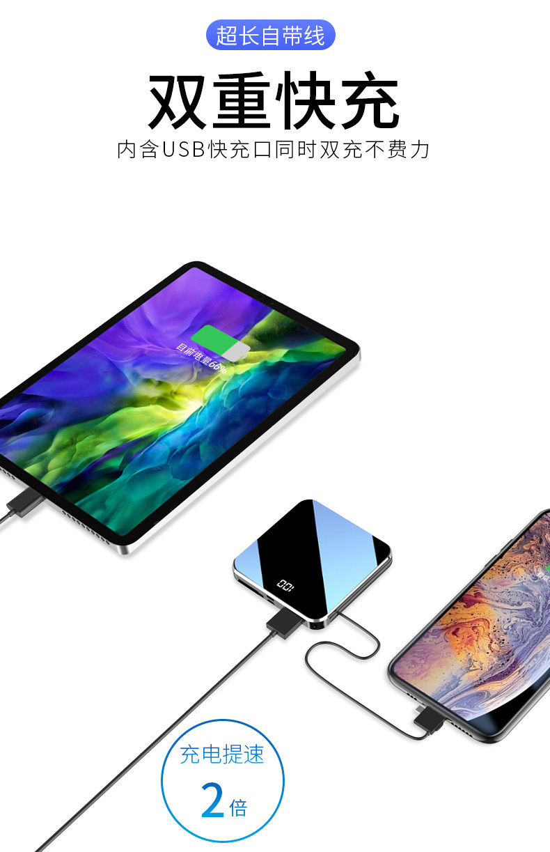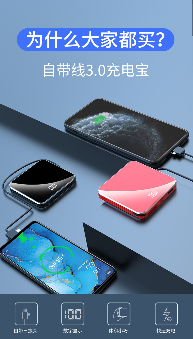 Зарядка сокровища сокровища 20000 мАч с большой мощностью ультра -тщательно маленькой, небольшой и компактной, портативной самостоятельной мобильной мощностью, высокой 20 000 универсальных универсальных Oppo Apple Vivo быстрая зарядка выделенная подлинная флэш -зарядка 10 000 000 супер больших величин