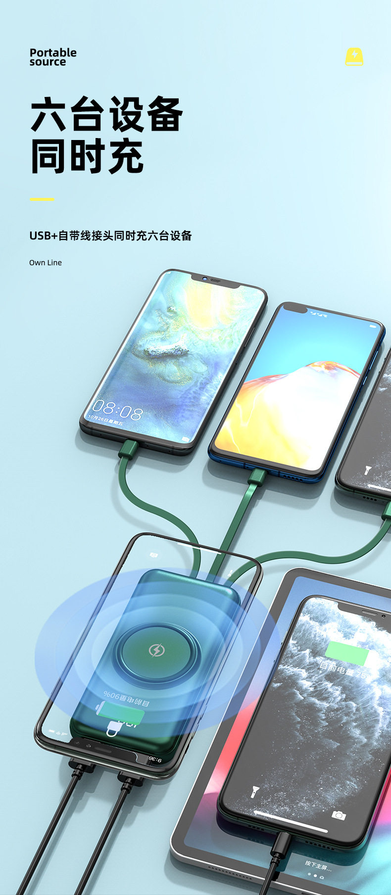 Собственный линейный банк мобильный телефон GM поставляется с четырьмя беспроводной зарядкой Mobile Power 20000 MAH 20000 MAH