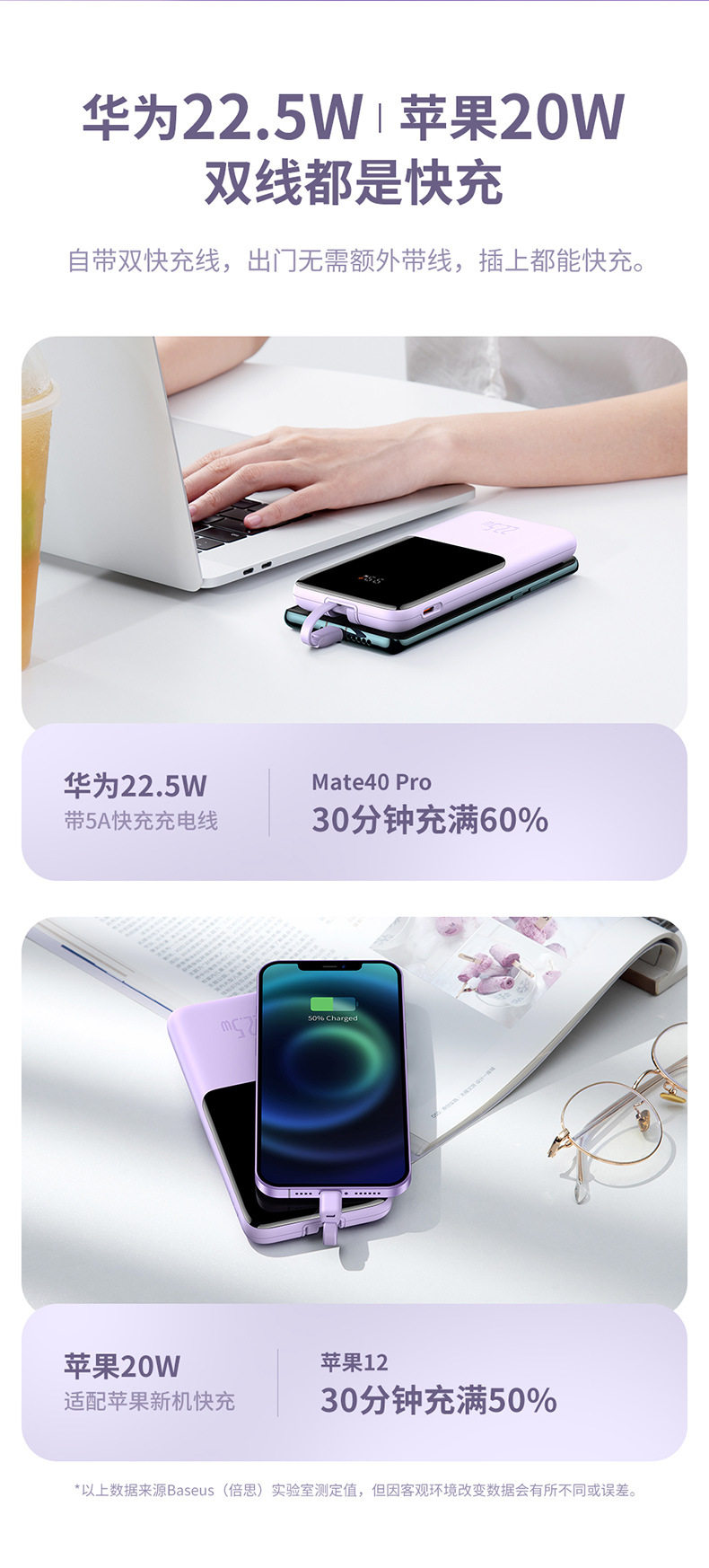 - Фиолетовый — 10 000 мАч — модель с флэш-зарядкой мощностью 20 Вт.
