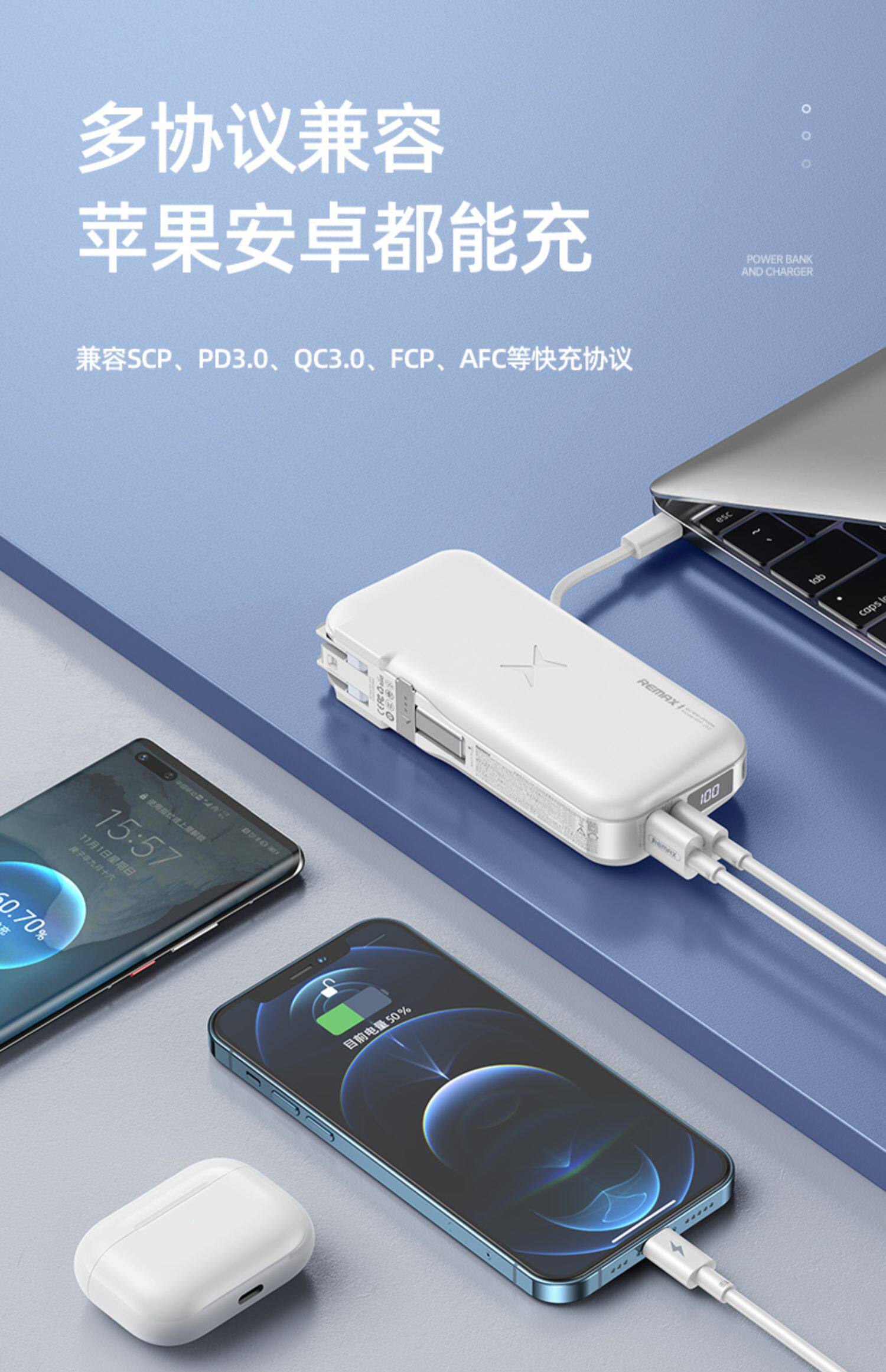 Apple, xiaomi, вместительный и большой маленький ультратонкий портативный совместимый блок питания с зарядкой, мобильный телефон, «три в одном»