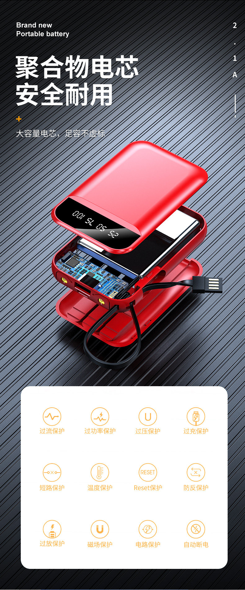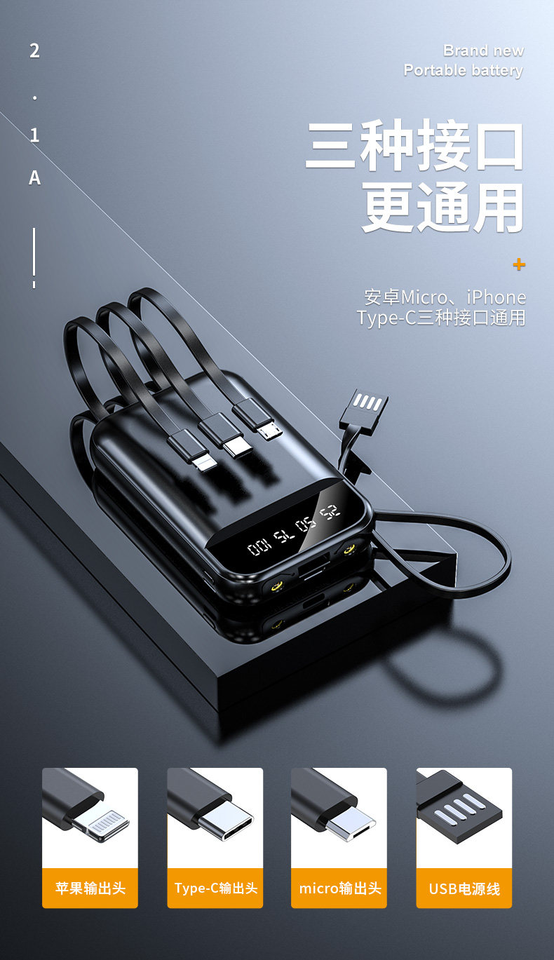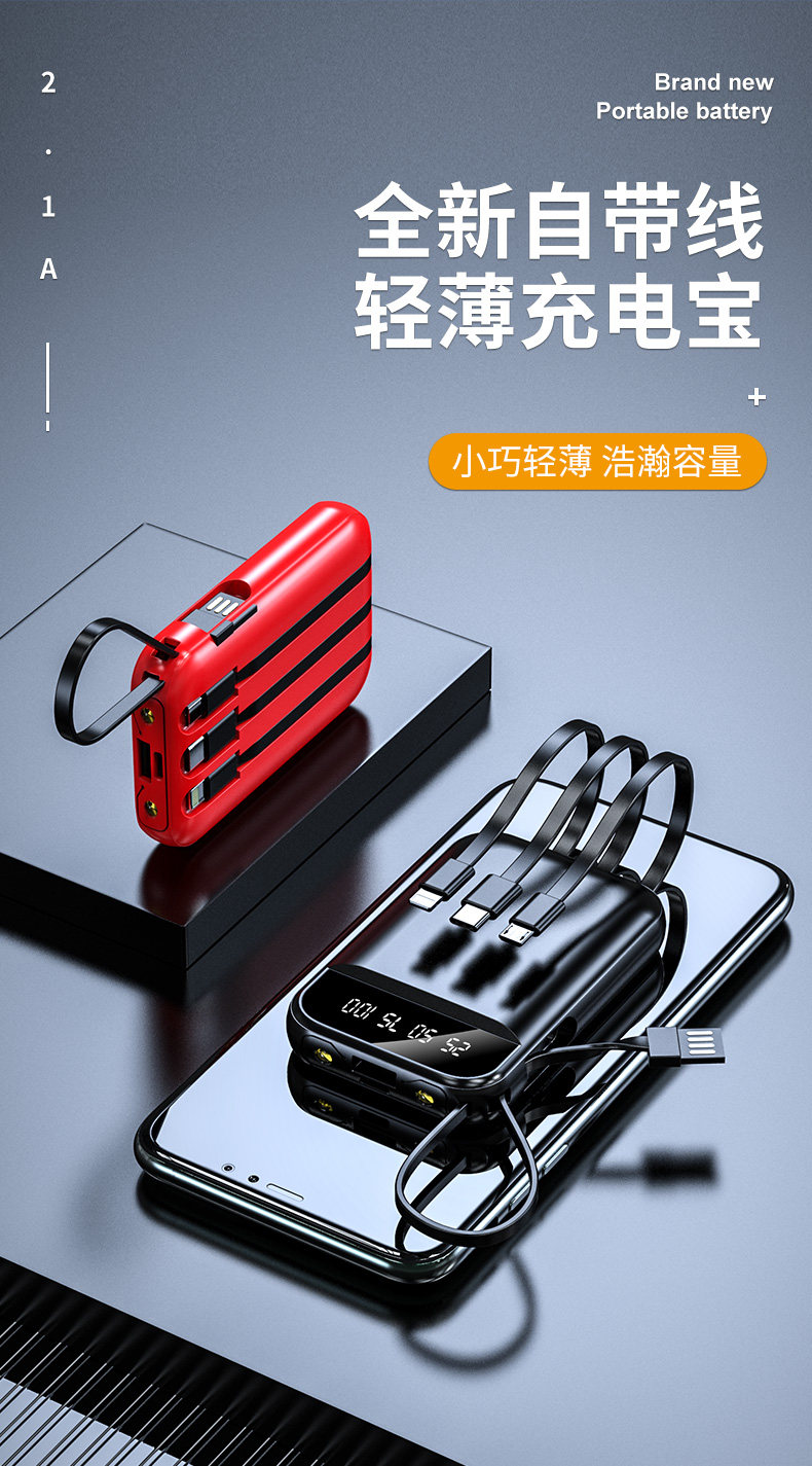 Вместительный и большой портативный маленький универсальный ремешок с зарядкой, блок питания