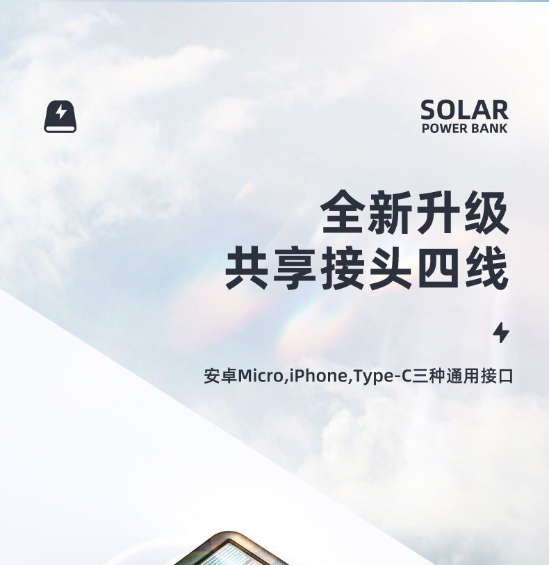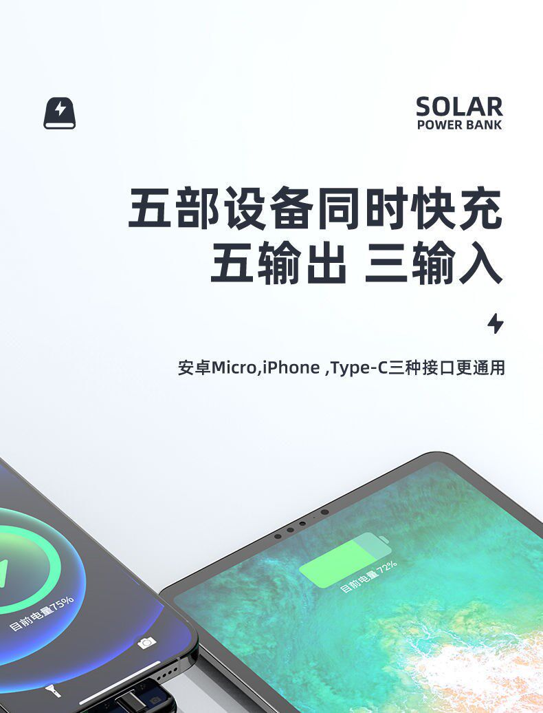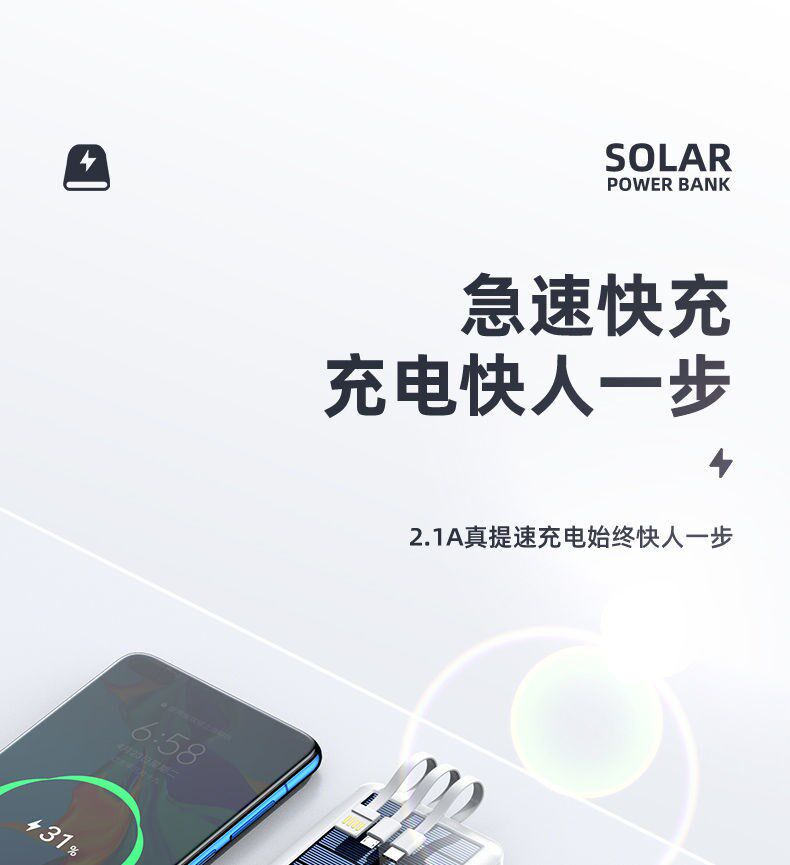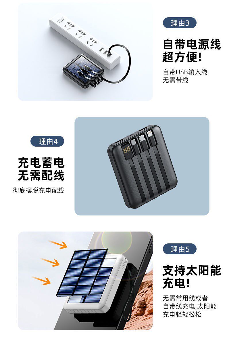 - Белая [быстро зарядка маленькая кабель] Солнечная энергия+построена