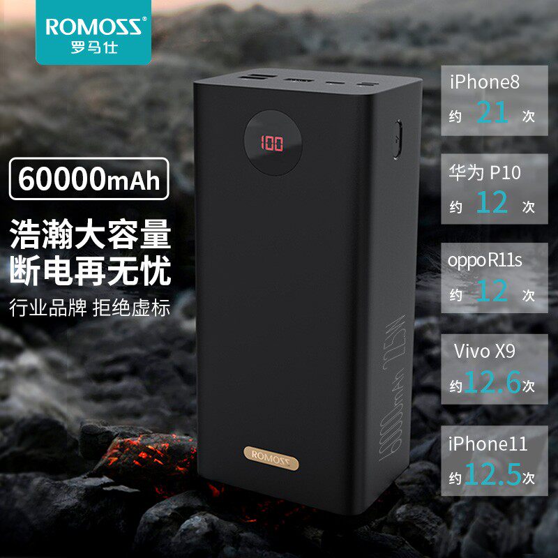 ROMIS 60 000 MAH Ultra -Large Simobly Mobile Phorning Зарядка быстро заряжая мобильная мобильная мобильная мобильная электростанция.