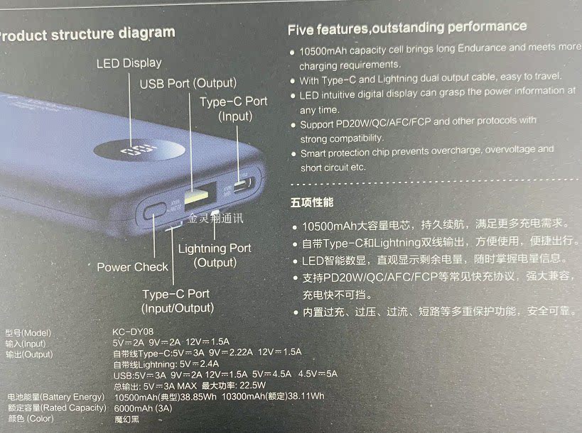 - 10500 мАч, поставляется с волшебным черным, поставляется с двойной линией 18W