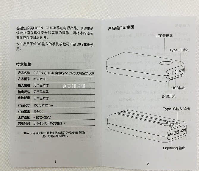 Pin Sin Sheng's Line Зарядка сокровища PD Двух -быстрая зарядка 21000 мАч.