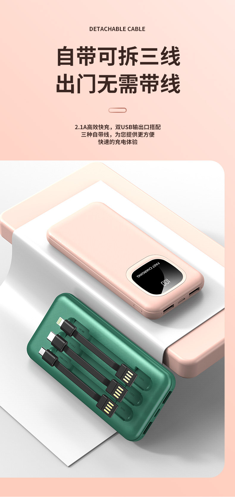 Милый ультратонкий портативный маленький блок питания, «три в одном»
