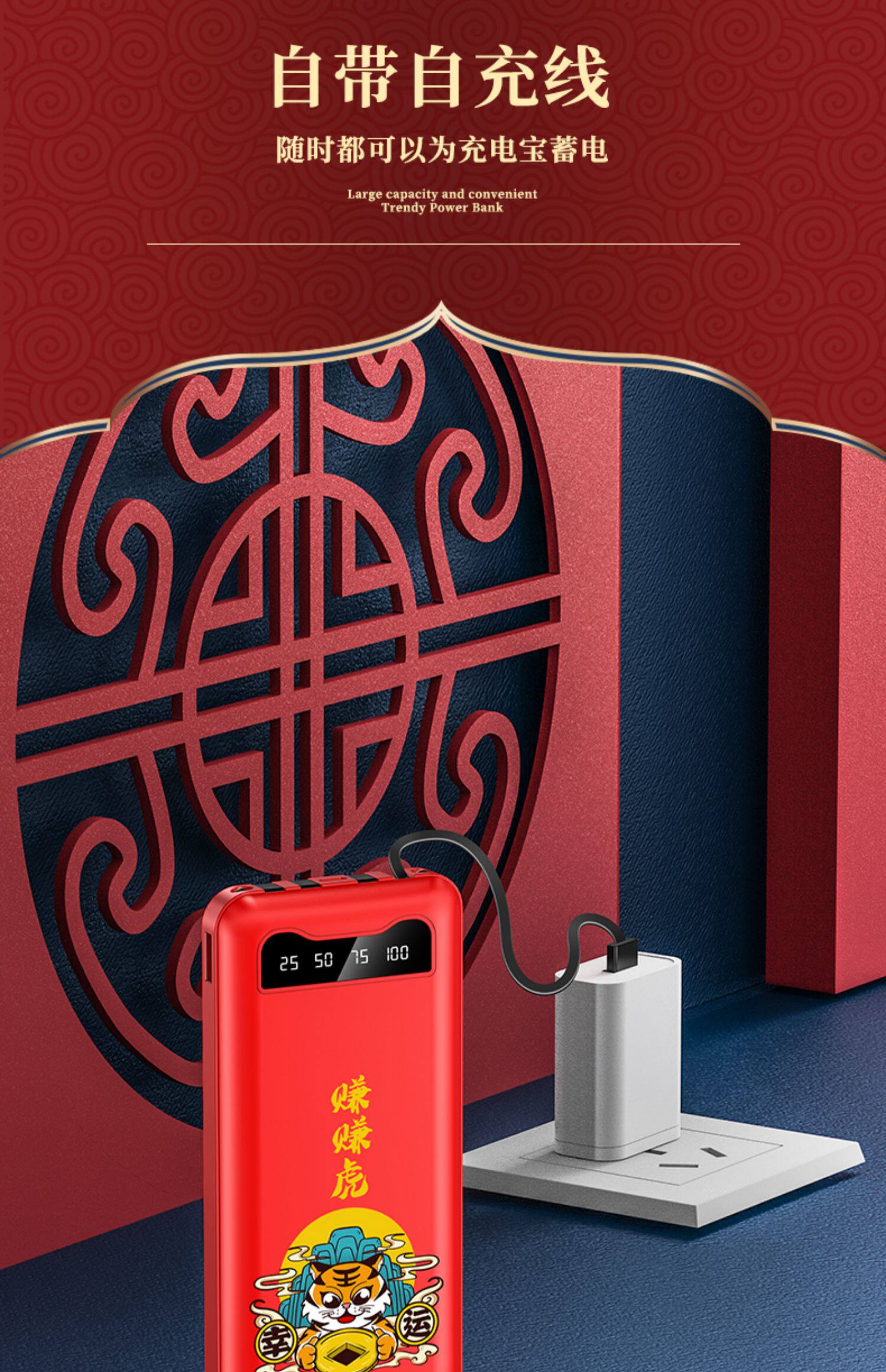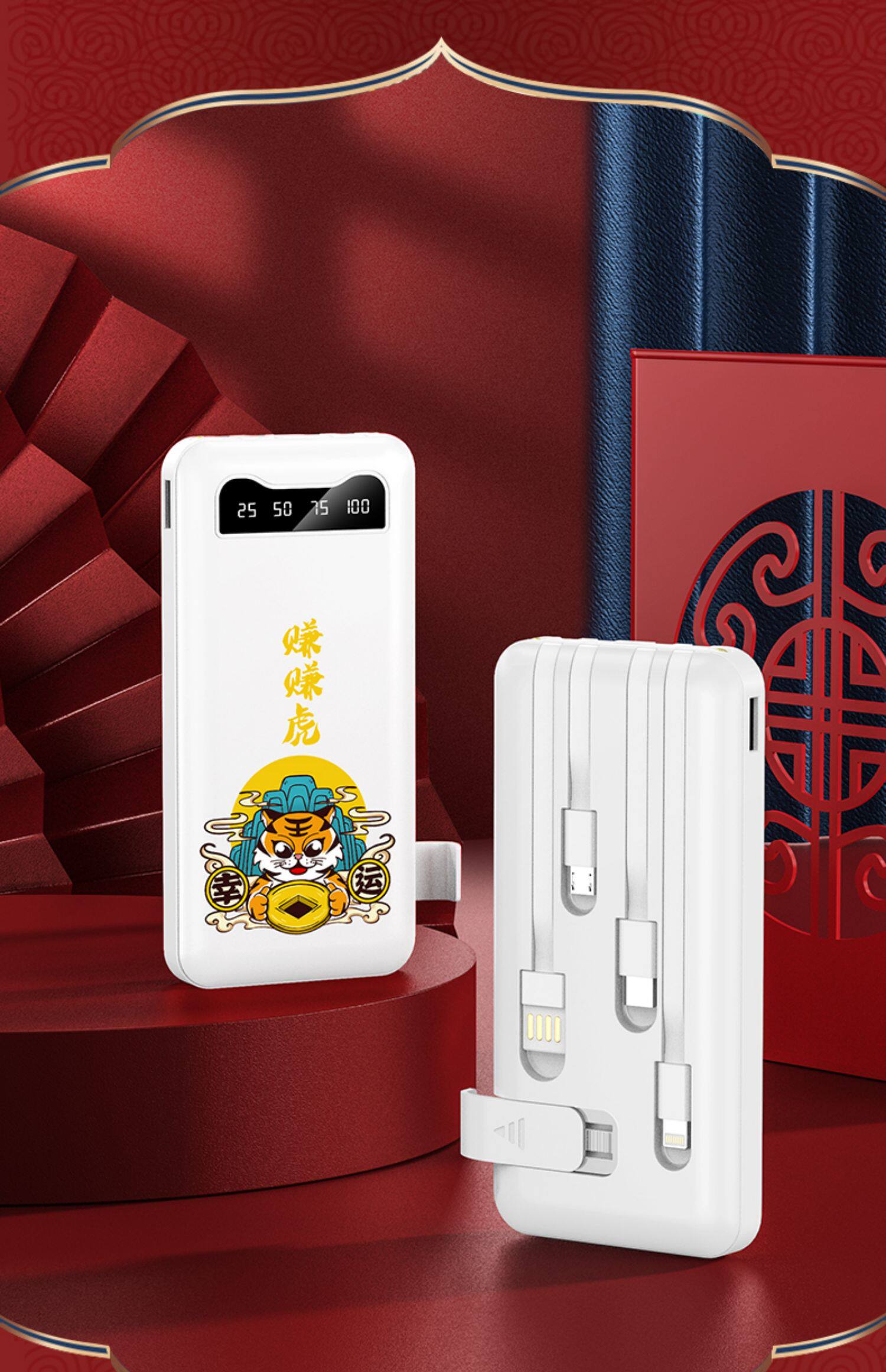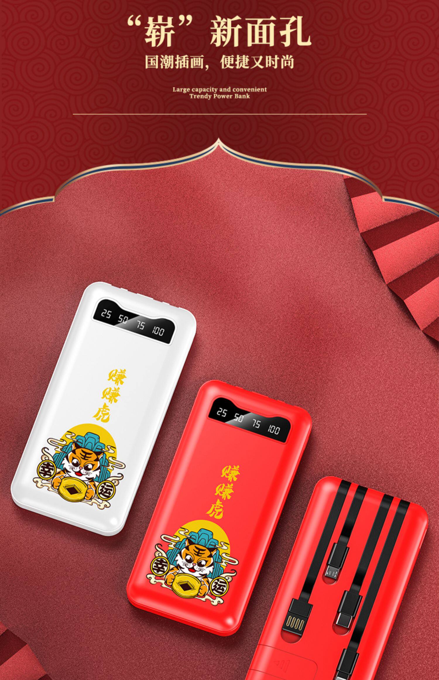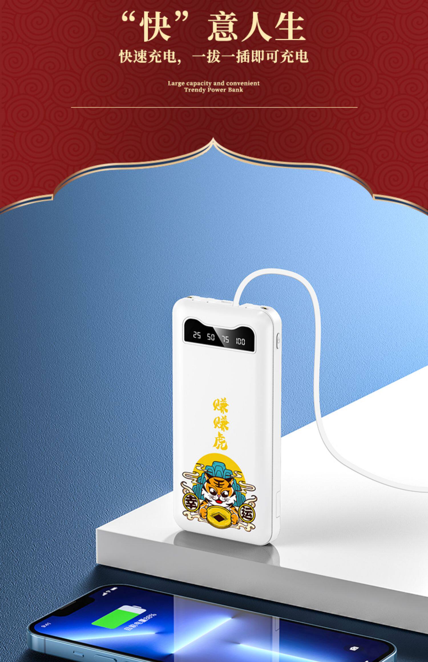 [Подарочная коробка тигрового года] Го -Чао, зарабатывающая тигровые годы, заряжая сокровищницу Три -в одном маленьком изогнутом небольшом небольшом приложении Apple Vivo с большой мобильной мобильной силой Oppo