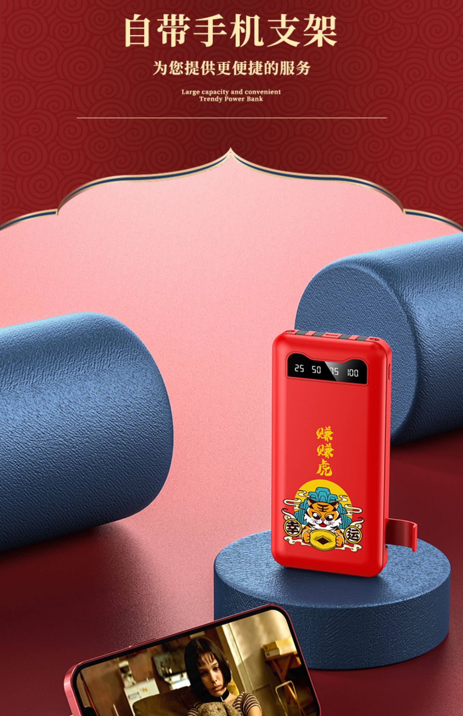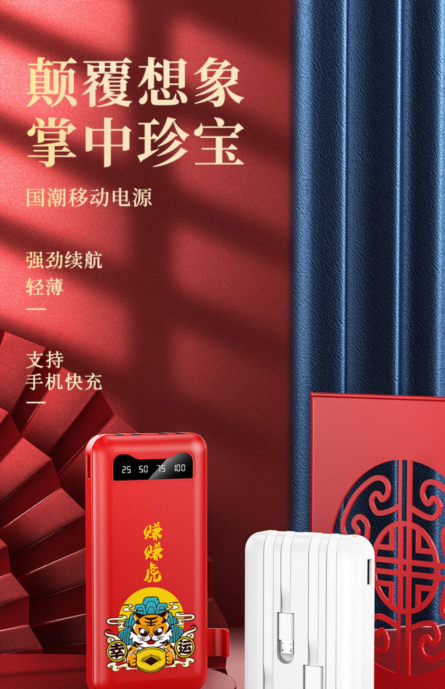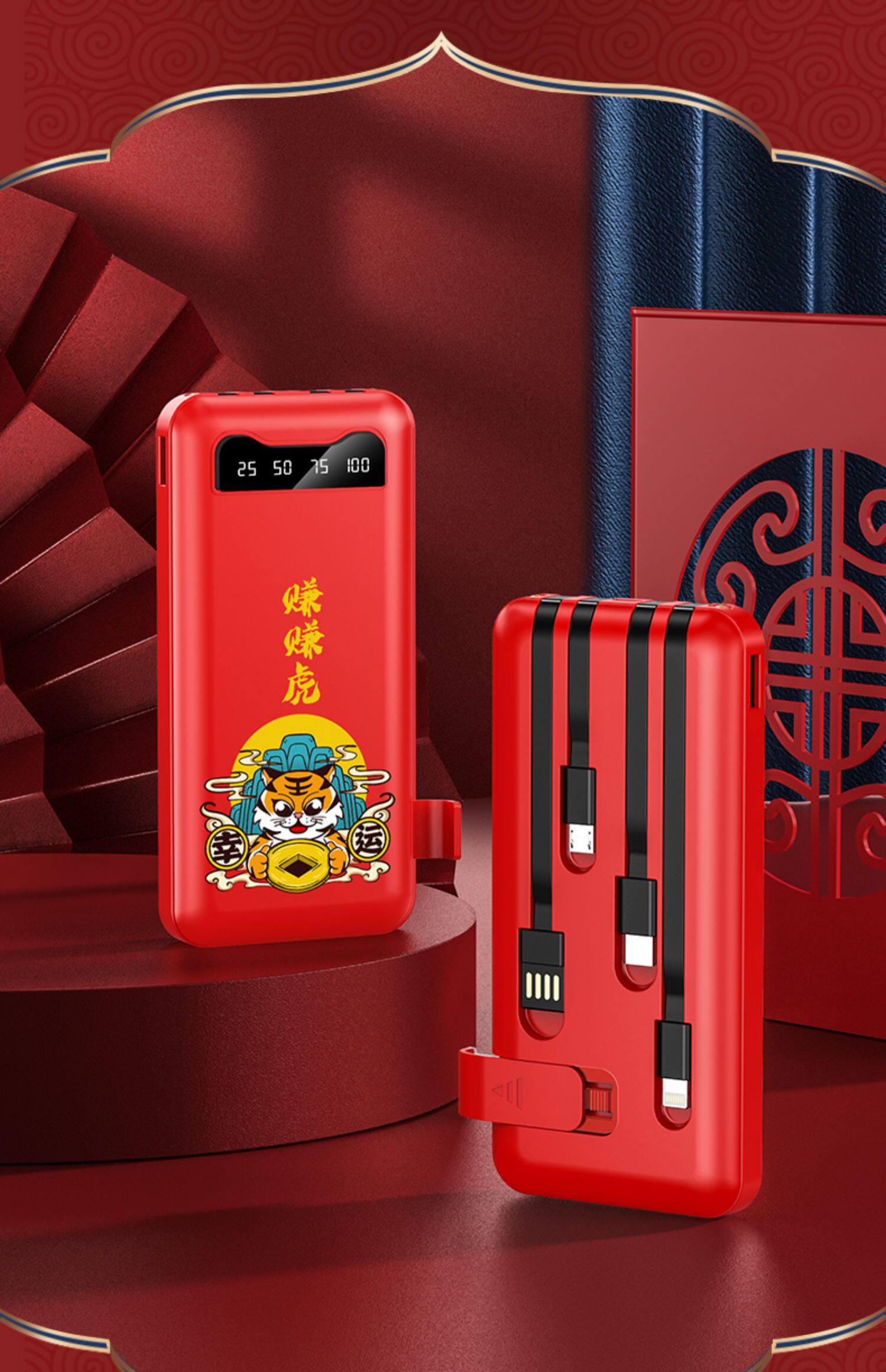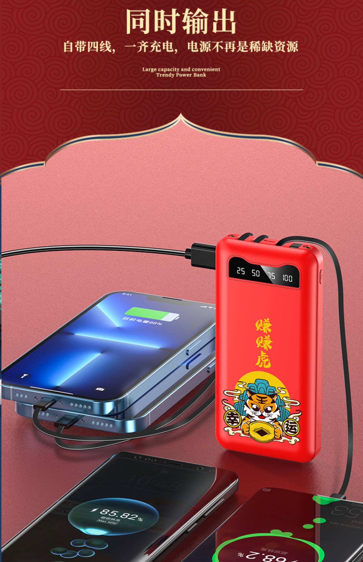 [Подарочная коробка тигрового года] Го -Чао, зарабатывающая тигровые годы, заряжая сокровищницу Три -в одном маленьком изогнутом небольшом небольшом приложении Apple Vivo с большой мобильной мобильной силой Oppo
