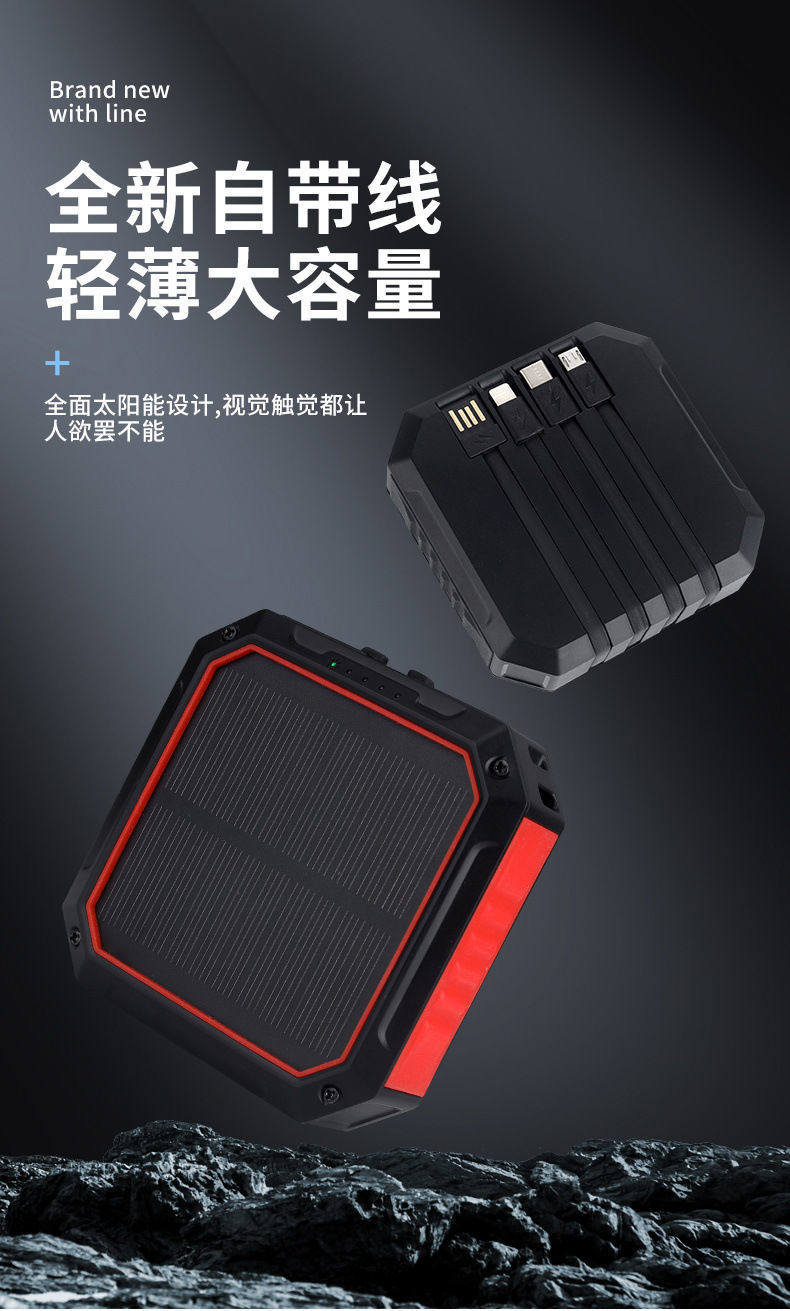 Наружная водонепроницаемая кампания Солнечная зарядка сокровища четыре -в одном портативном студенческом мобильном мобильном мощности 100 000 мА