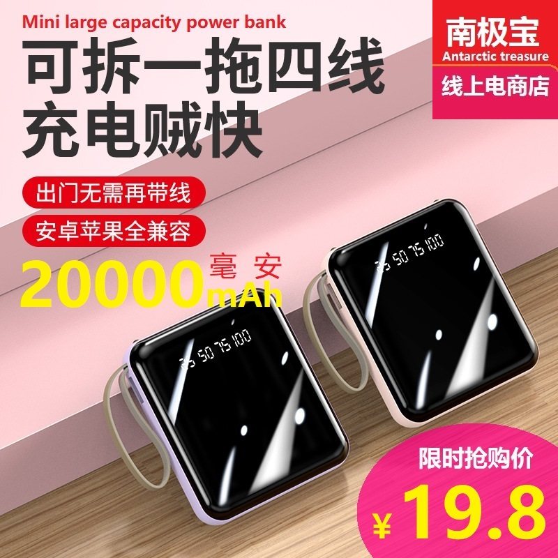 Mini Power Bank Ultra -Thin Mini -Self -построенный четырех -линейный зарядный сокровище 20000 мАч зеркальный номер быстро и быстрее