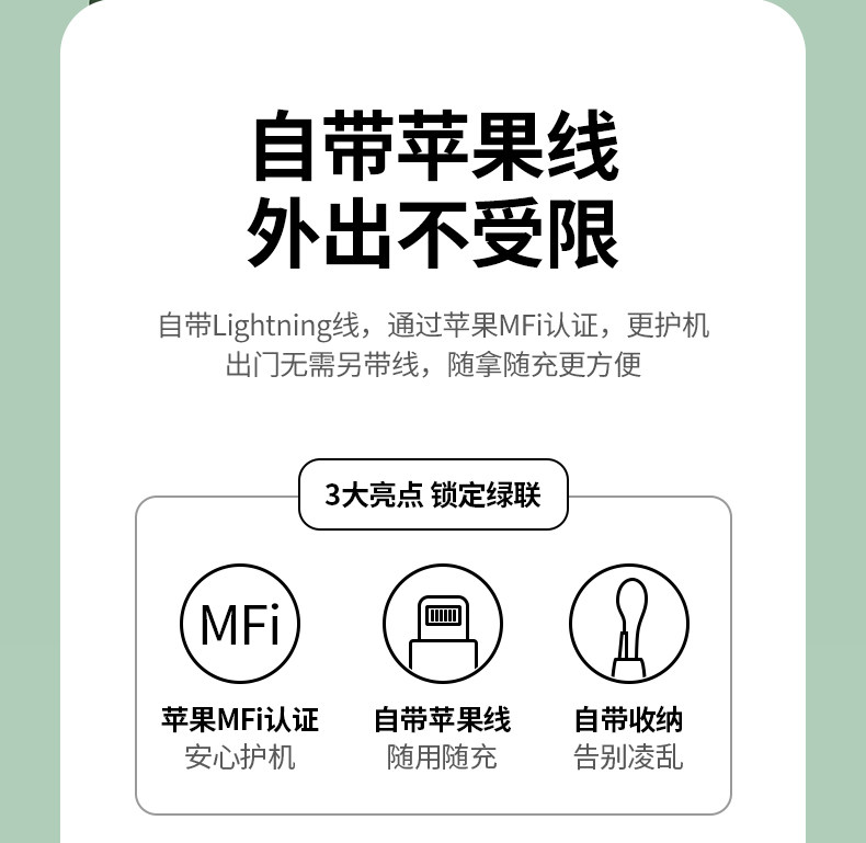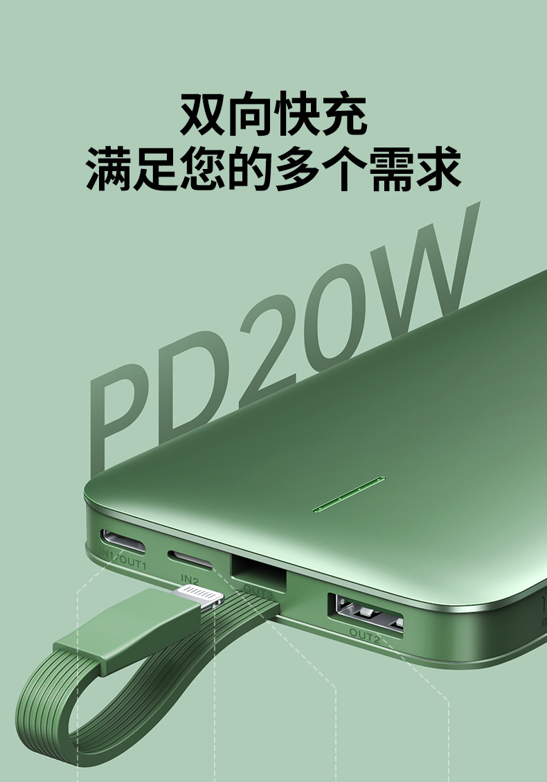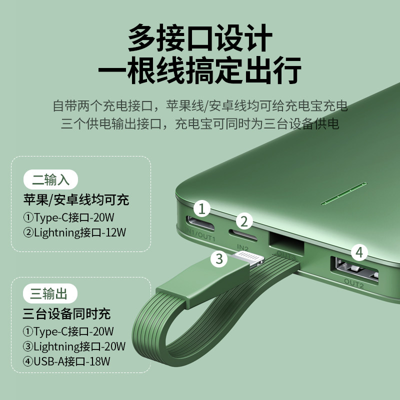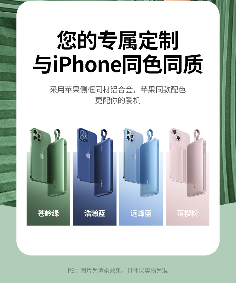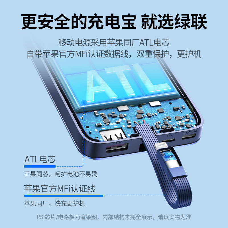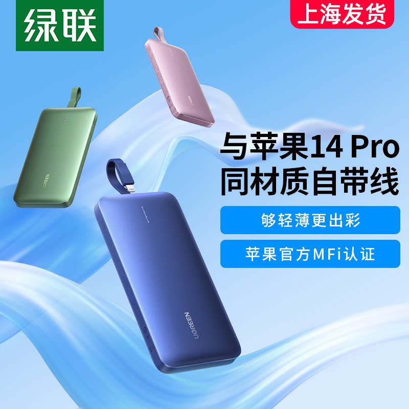 Green Union поставляется с MFI Wire зарядка сокровища iPhone14 Fast Charge PD20W Мобильный источник питания подходит для Apple 13 Huawei