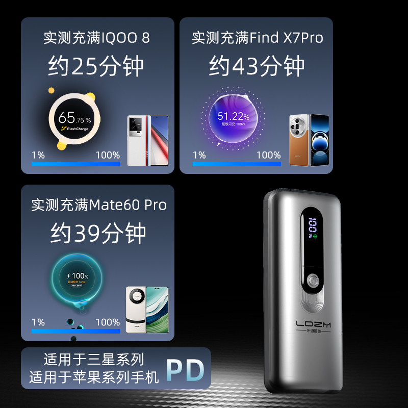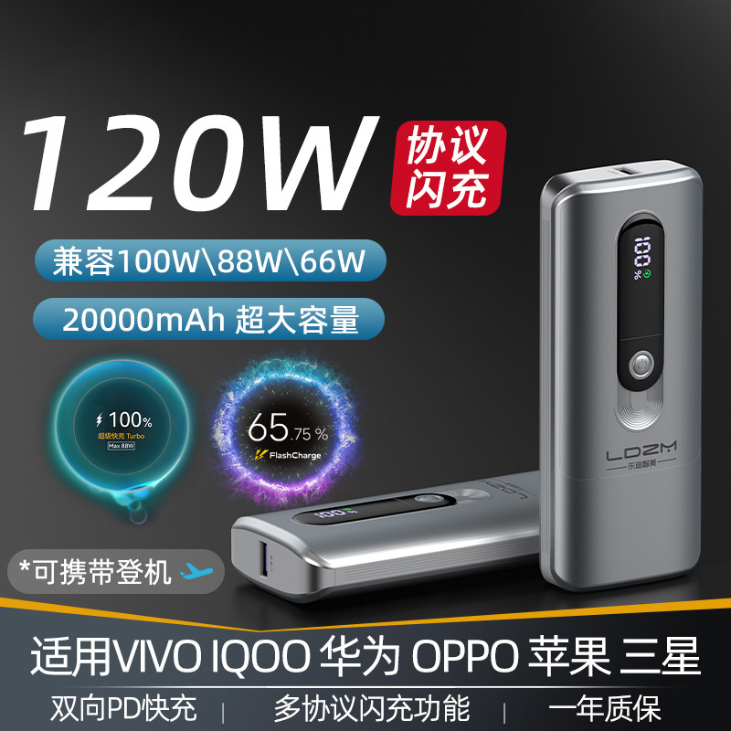 LDZM Зарядка сокровища 120W подходит для Huawei Vivo Honor Iqoo Onepo Oppo Samsung Apple Xiaomi Flash Зарядка