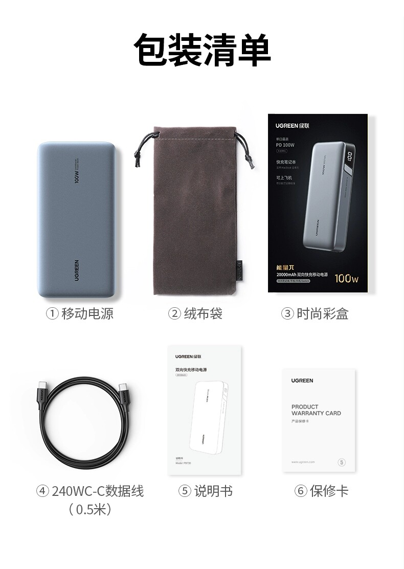 绿联 PB720 power Bank 20000 мАч 100 Вт быстрая зарядка Ugreen аккумулятор для ноутбука полимерный литий-ионный аккумулятор