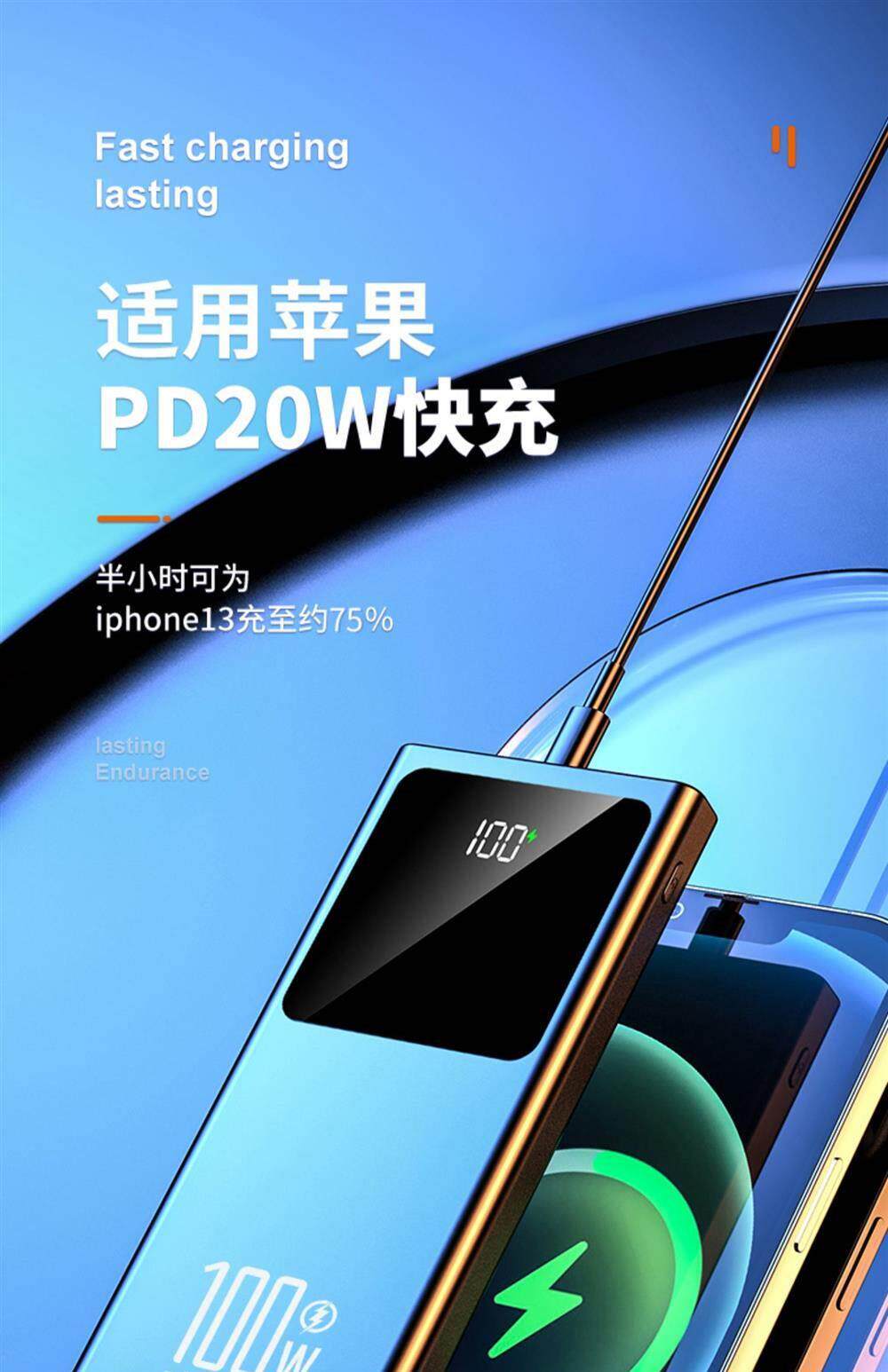 20000 мАч беспроводной энергетический банк 4 Кабели беспроводной четырехселной зарядки сокровищ