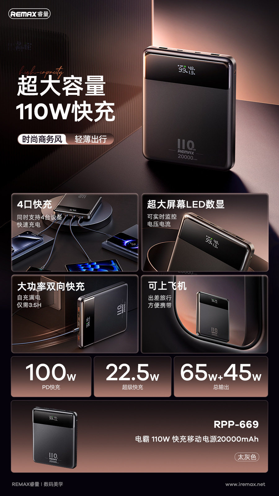 Вместительный и большой блок питания, мобильный телефон, ноутбук, 110W, 20000mah